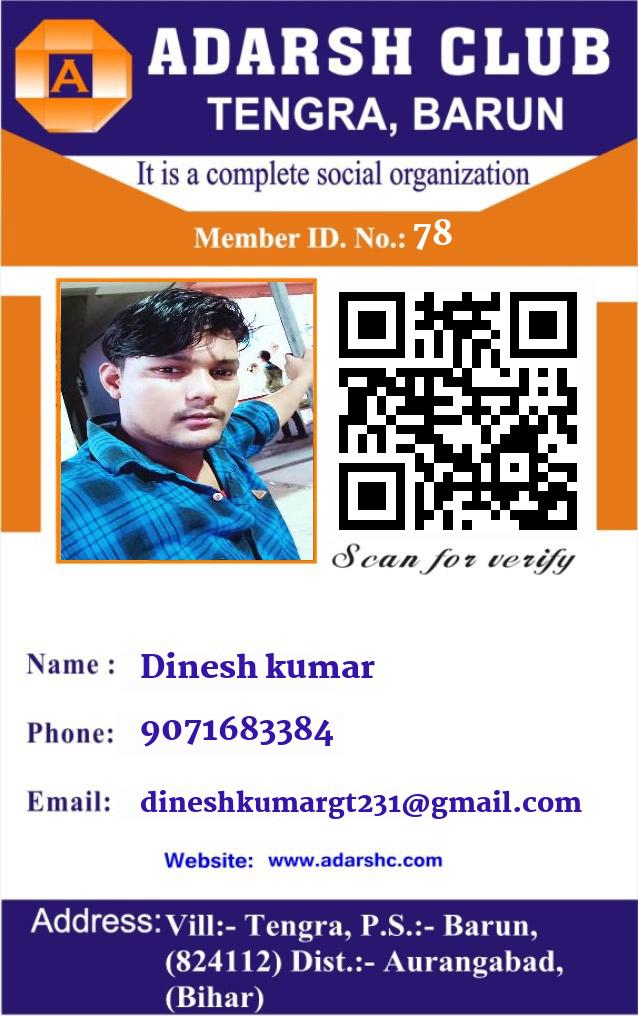 😀 Dinesh kumar 👉 ADARSH CLUB का सदस्य है!