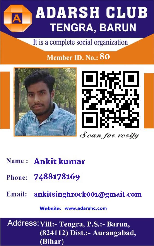 😀 Ankit kumar 👉 ADARSH CLUB का सदस्य है!