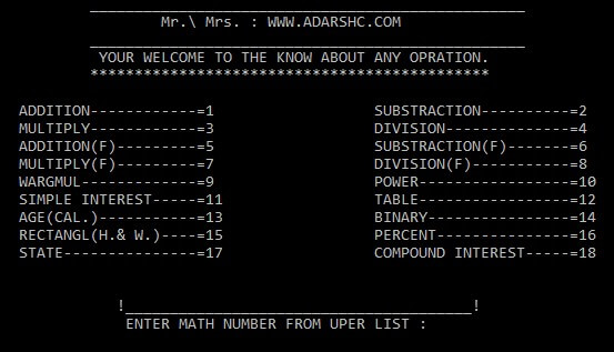 जोड़, घटाव, गुणा, भाग, भिन्न का जोड़, भिन्न का घटाव, भिन्न का भाग, भिन्न का गुणा, वर्गमूल, पहाड़ा, बाइनरी नंबर, साधारण ब्याज, चक्रवृदी ब्याज, प्रतिशत, परिणाम, तथा भारत देश के सभी राज्यों