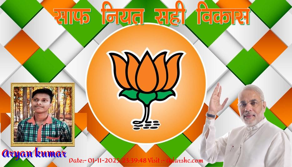 मैं (Aryan kumar) अपने 🌷 BJP पार्टी की ओर से आपको हार्दिक - हार्दिक बधाई देता हूँ, ईस पार्टी को सहयोग देने के लिये 🌷