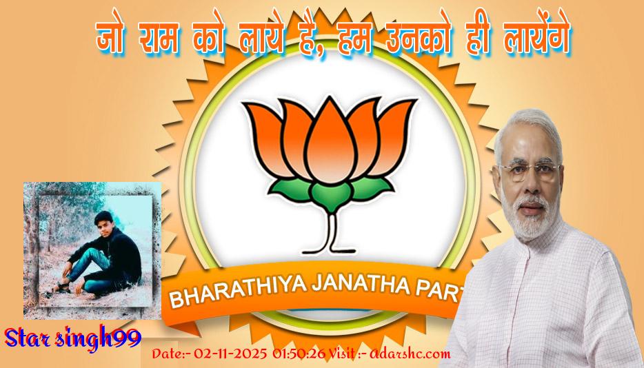 मैं (Star singh99) अपने 🌷 BJP पार्टी की ओर से आपको हार्दिक - हार्दिक बधाई देता हूँ, ईस पार्टी को सहयोग देने के लिये 🌷