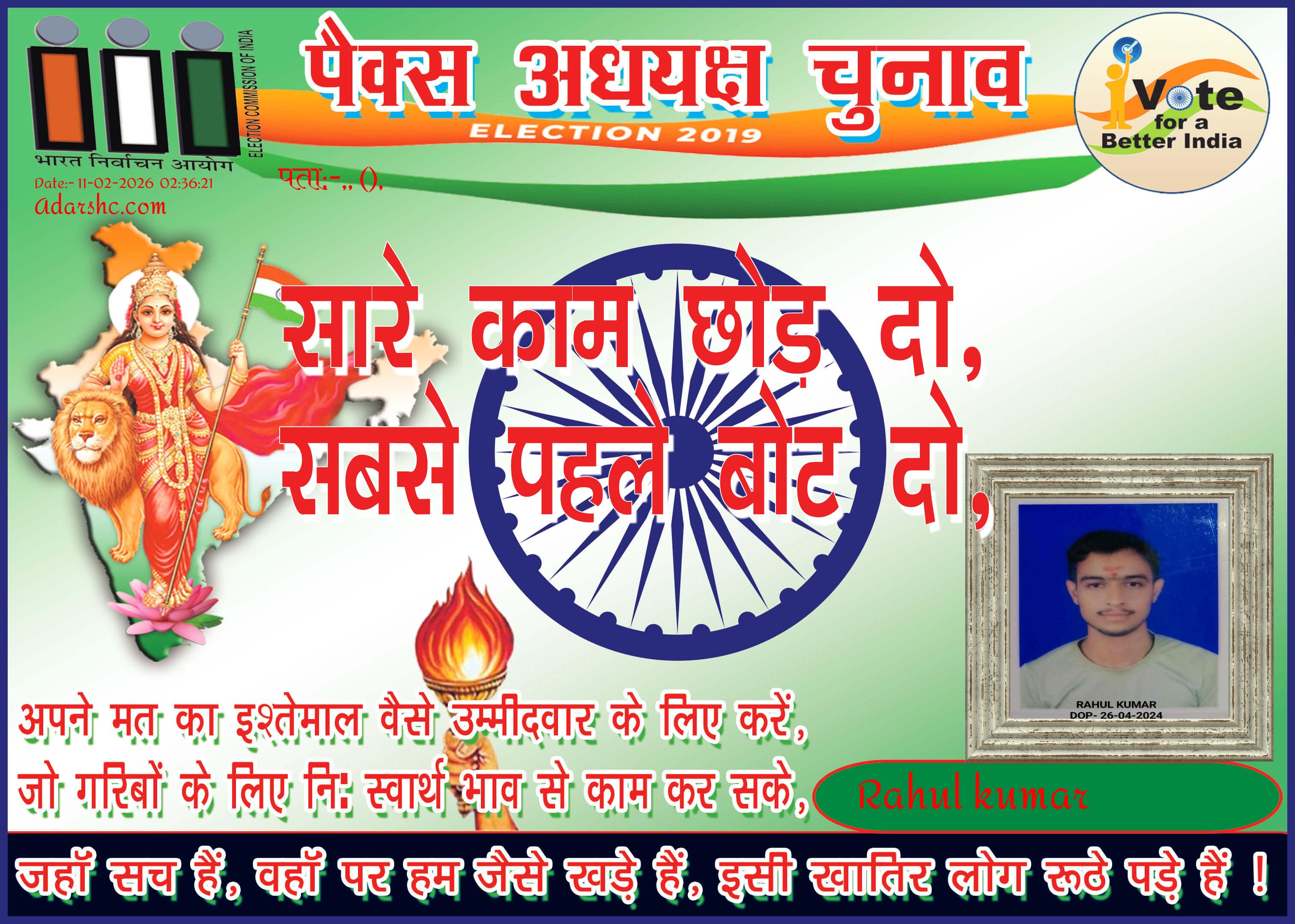 पैक्स चुनाव - 2019 को लेकर यह संदेश लोगों के हित में और सही प्रतिनिधि चुनने हेतु उद्देश्य से जारी किया गया है ! 🙏