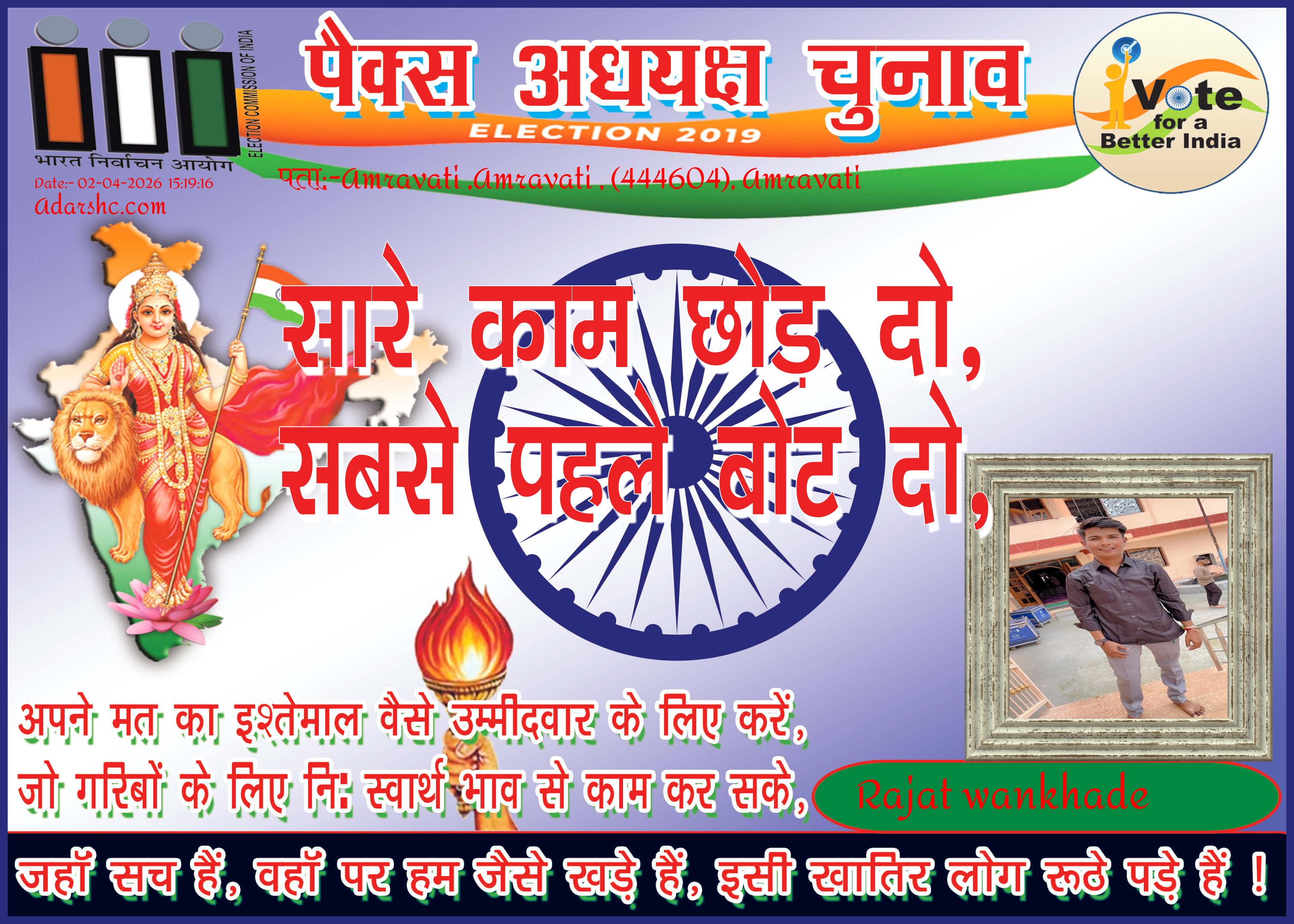 पैक्स चुनाव - 2019 को लेकर यह संदेश लोगों के हित में और सही प्रतिनिधि चुनने हेतु उद्देश्य से जारी किया गया है ! 🙏