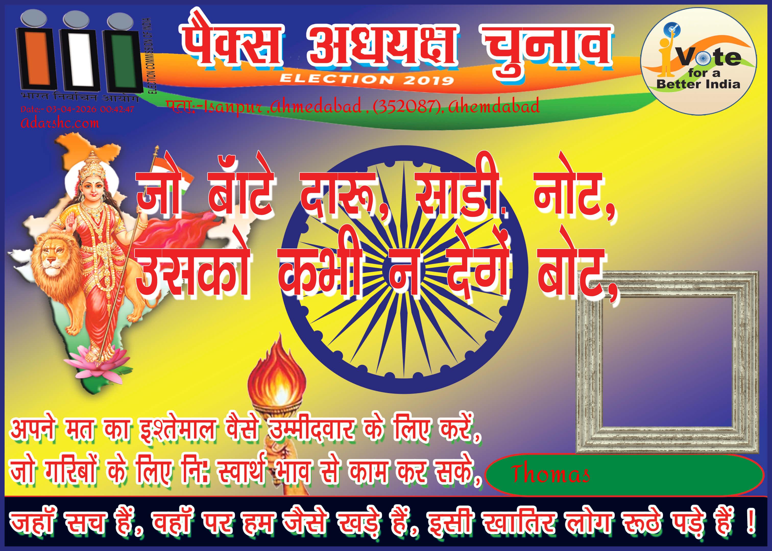 पैक्स चुनाव - 2019 को लेकर यह संदेश लोगों के हित में और सही प्रतिनिधि चुनने हेतु उद्देश्य से जारी किया गया है ! 🙏