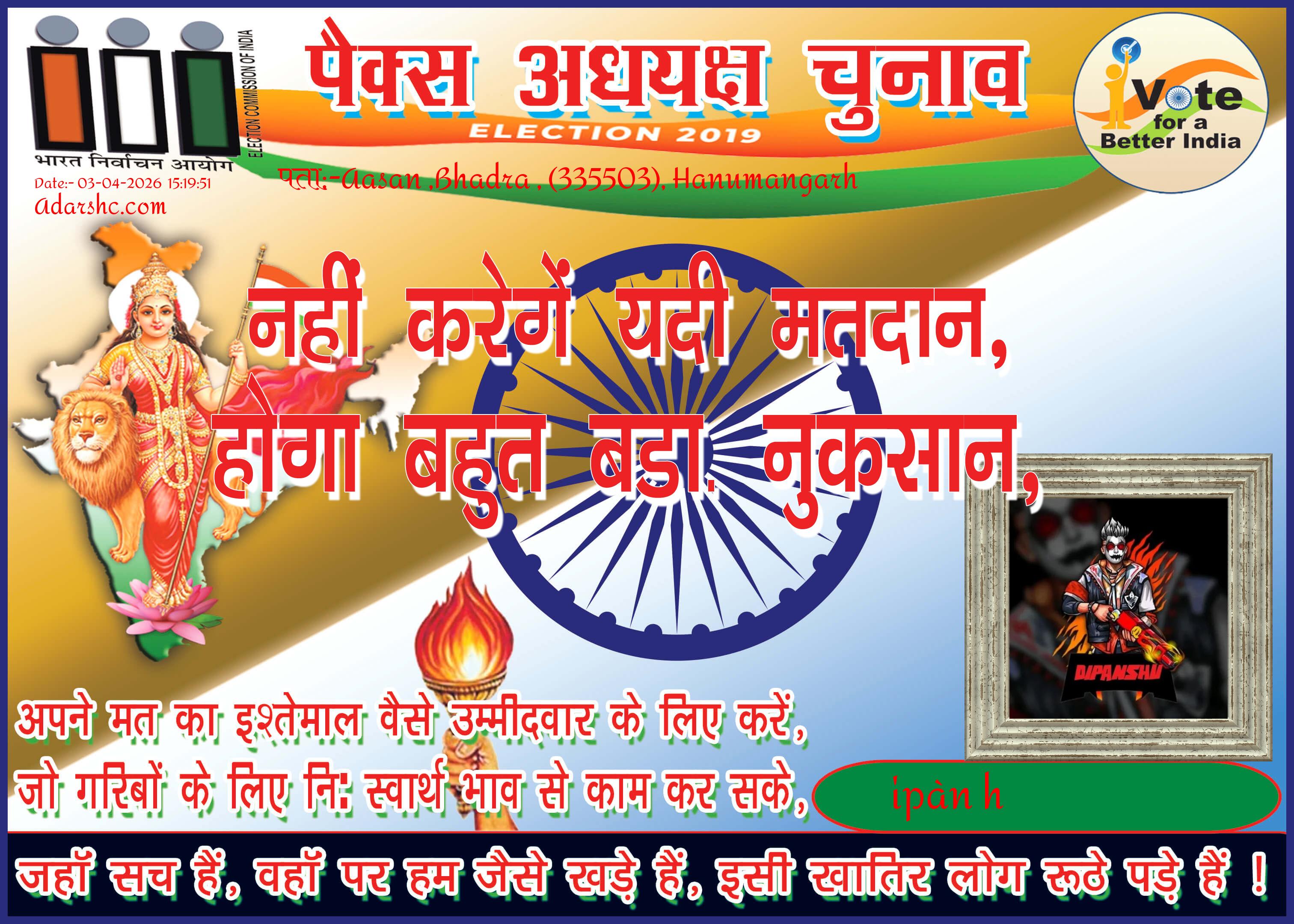 पैक्स चुनाव - 2019 को लेकर यह संदेश लोगों के हित में और सही प्रतिनिधि चुनने हेतु उद्देश्य से जारी किया गया है ! 🙏