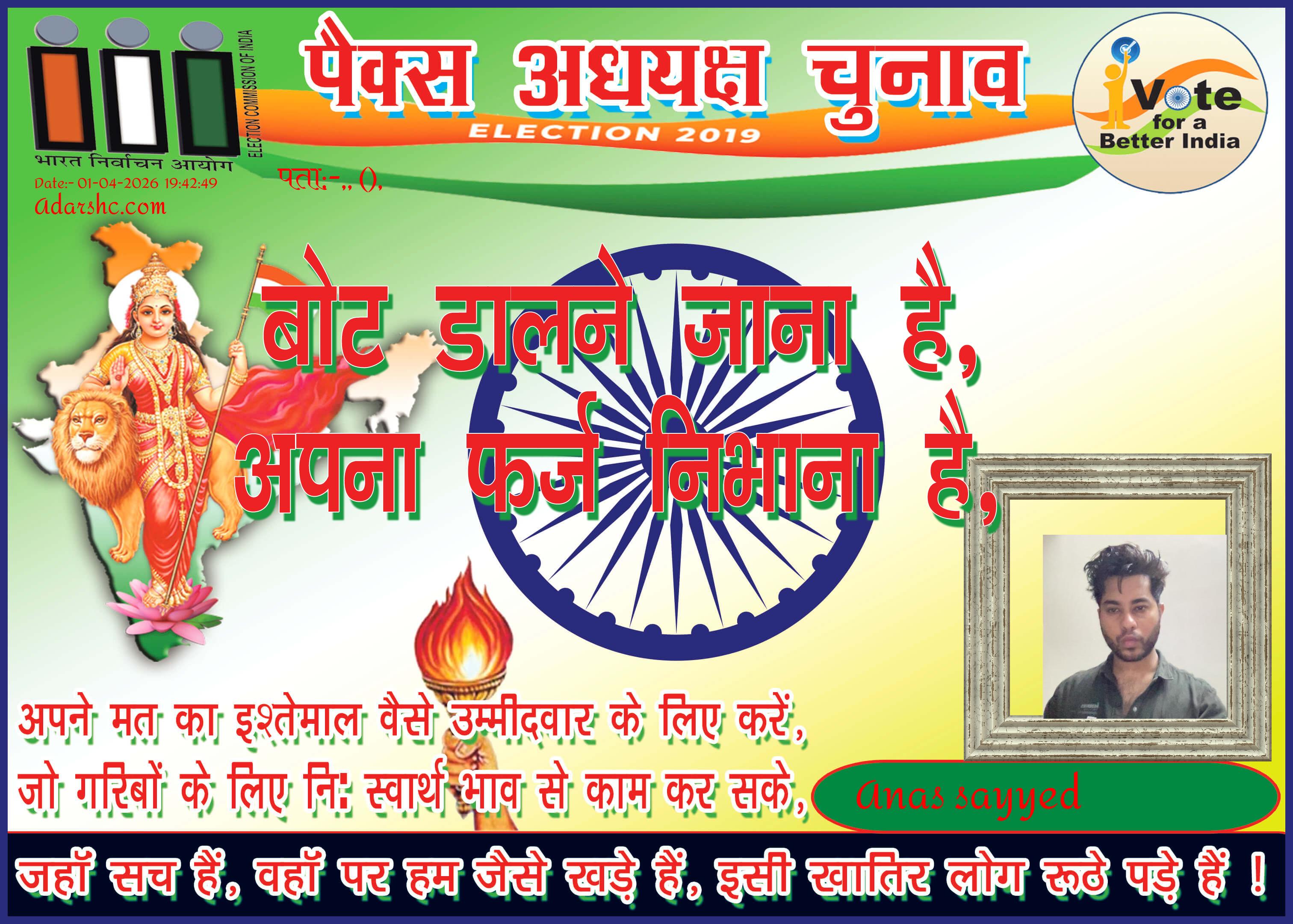 पैक्स चुनाव - 2019 को लेकर यह संदेश लोगों के हित में और सही प्रतिनिधि चुनने हेतु उद्देश्य से जारी किया गया है ! 🙏