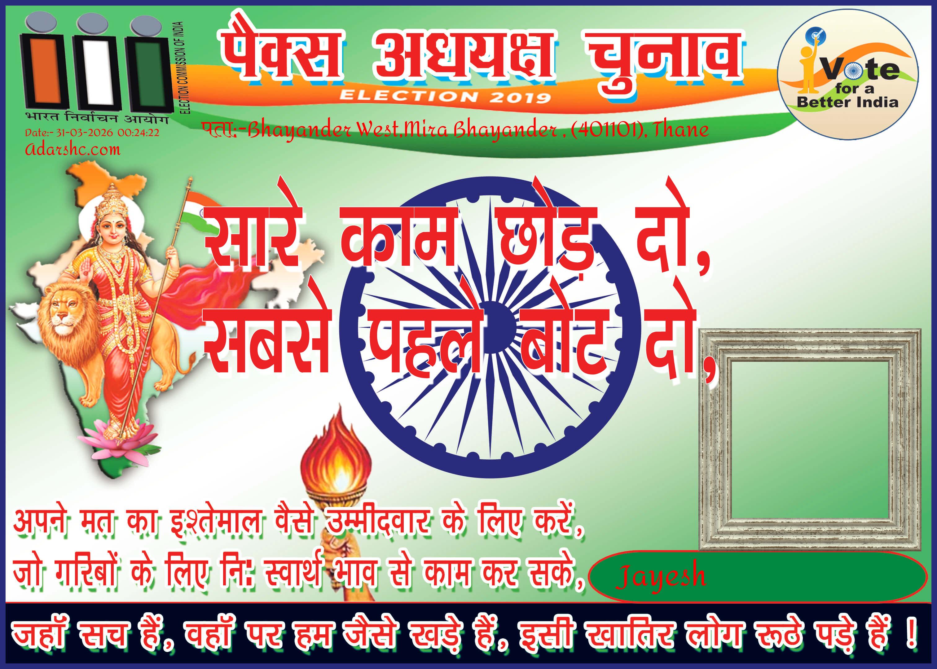 पैक्स चुनाव - 2019 को लेकर यह संदेश लोगों के हित में और सही प्रतिनिधि चुनने हेतु उद्देश्य से जारी किया गया है ! 🙏