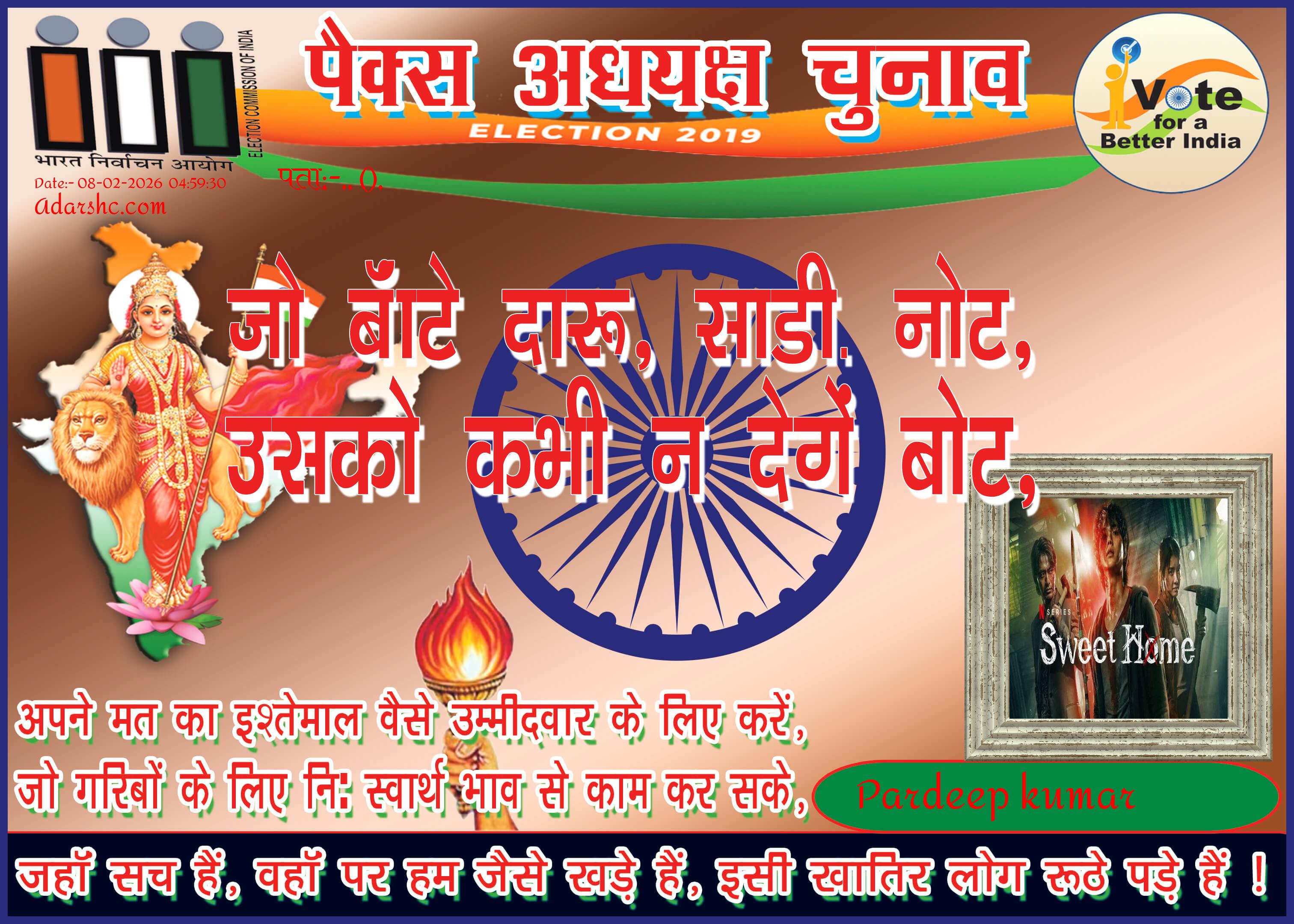 पैक्स चुनाव - 2019 को लेकर यह संदेश लोगों के हित में और सही प्रतिनिधि चुनने हेतु उद्देश्य से जारी किया गया है ! 🙏