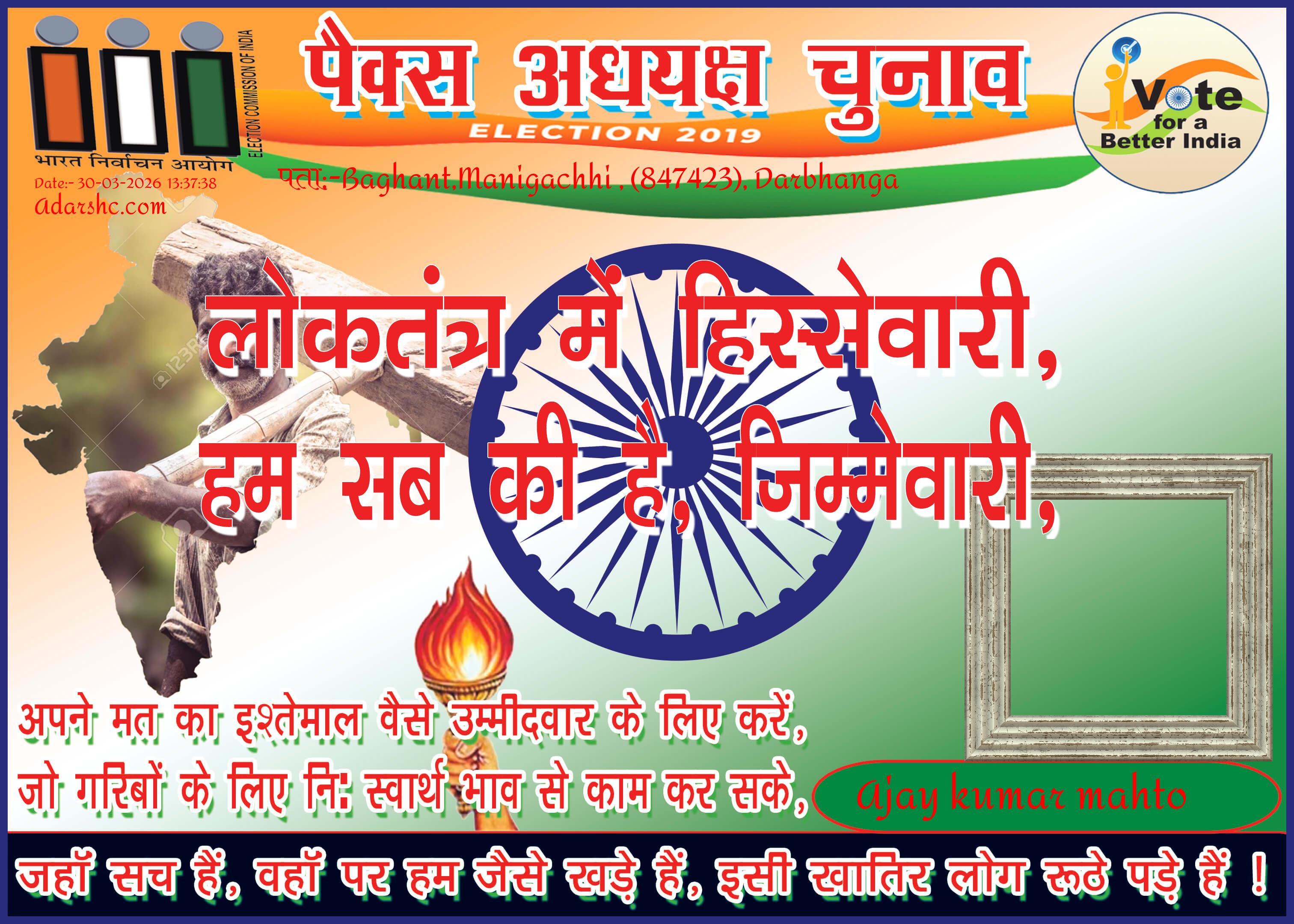 पैक्स चुनाव - 2019 को लेकर यह संदेश लोगों के हित में और सही प्रतिनिधि चुनने हेतु उद्देश्य से जारी किया गया है ! 🙏