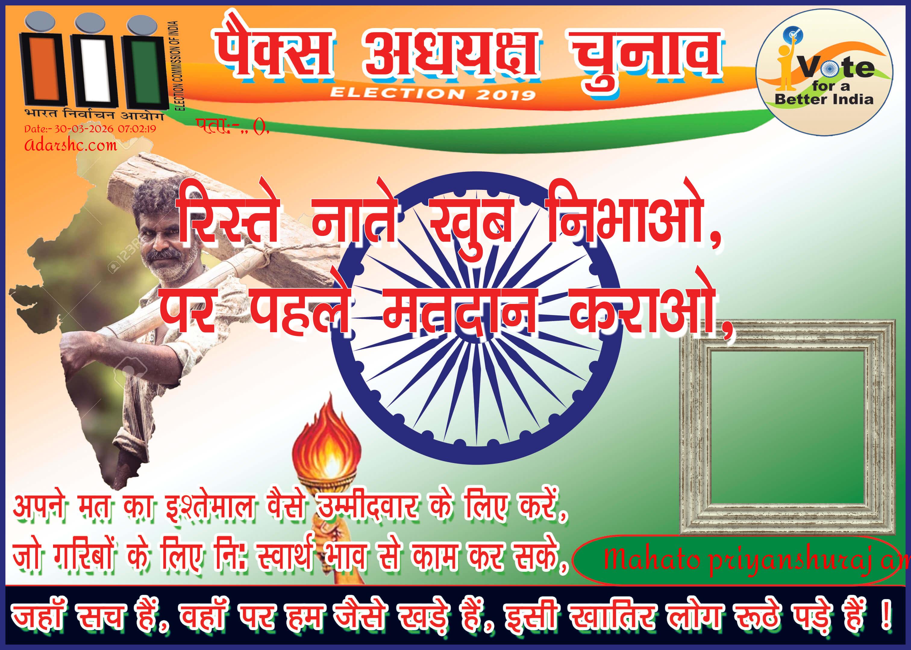 पैक्स चुनाव - 2019 को लेकर यह संदेश लोगों के हित में और सही प्रतिनिधि चुनने हेतु उद्देश्य से जारी किया गया है ! 🙏