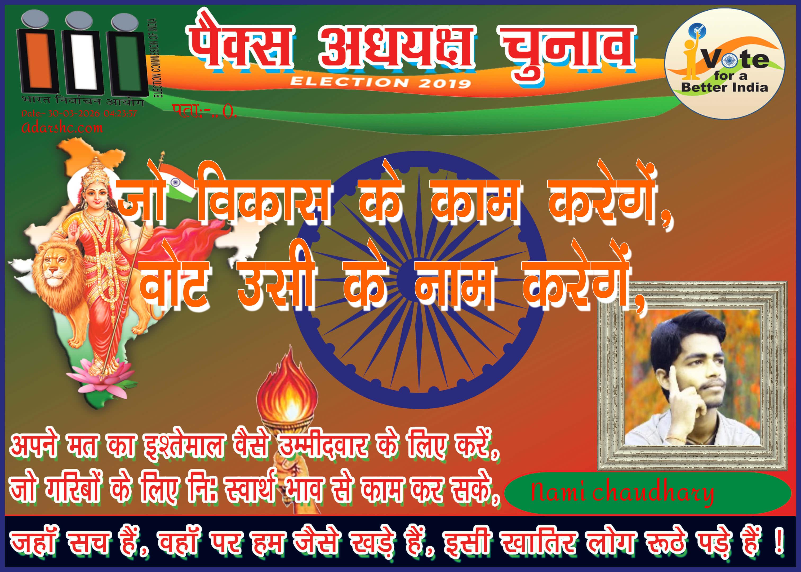 पैक्स चुनाव - 2019 को लेकर यह संदेश लोगों के हित में और सही प्रतिनिधि चुनने हेतु उद्देश्य से जारी किया गया है ! 🙏