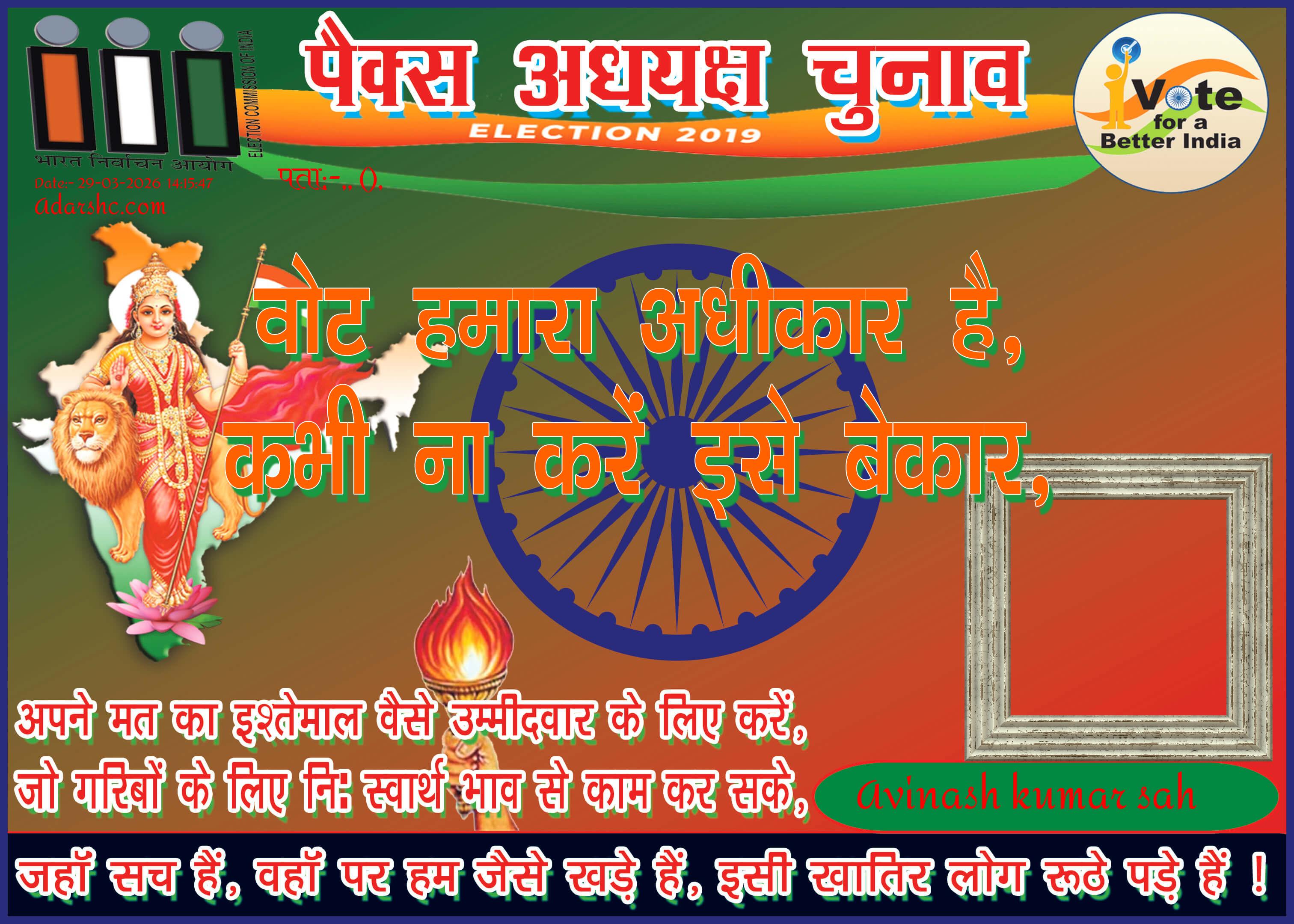 पैक्स चुनाव - 2019 को लेकर यह संदेश लोगों के हित में और सही प्रतिनिधि चुनने हेतु उद्देश्य से जारी किया गया है ! 🙏
