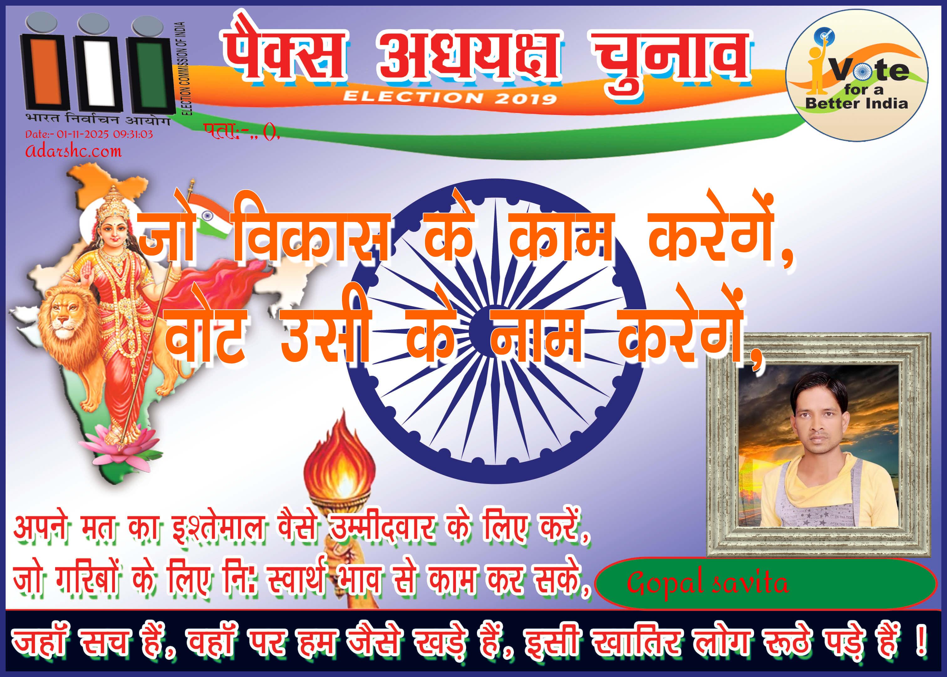 पैक्स चुनाव - 2019 को लेकर यह संदेश लोगों के हित में और सही प्रतिनिधि चुनने हेतु उद्देश्य से जारी किया गया है ! 🙏