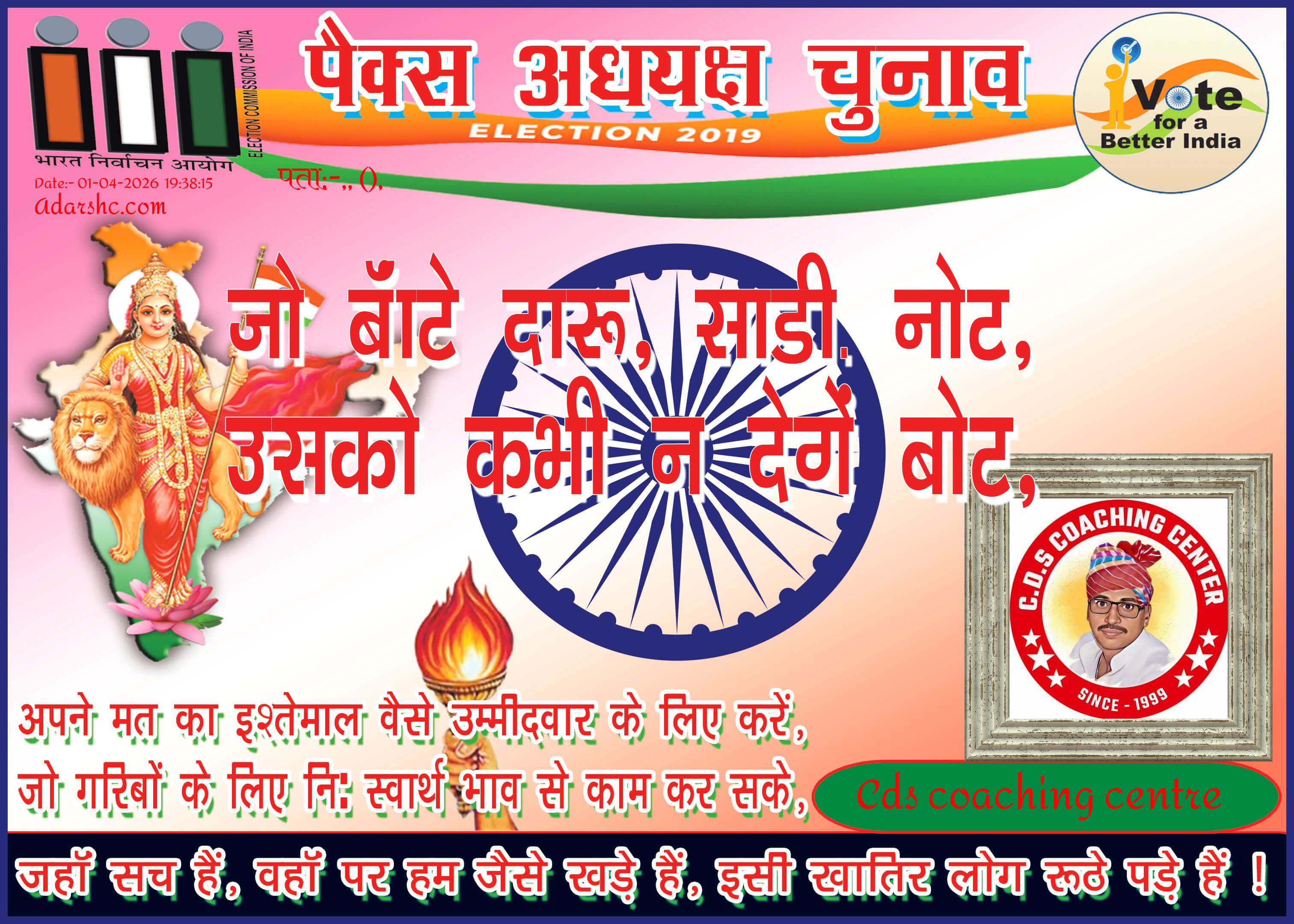 पैक्स चुनाव - 2019 को लेकर यह संदेश लोगों के हित में और सही प्रतिनिधि चुनने हेतु उद्देश्य से जारी किया गया है ! 🙏