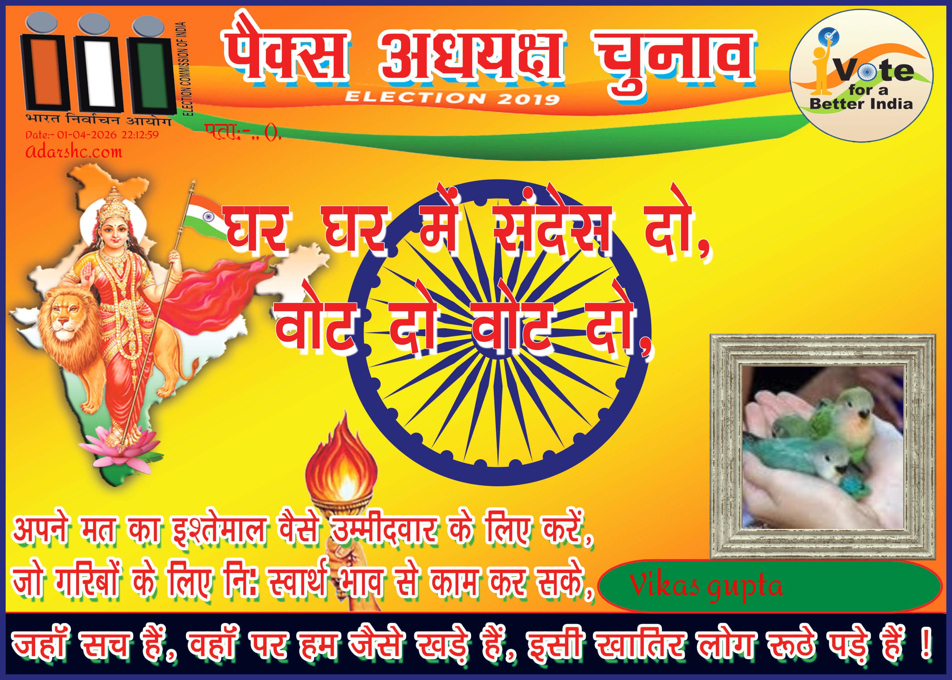 पैक्स चुनाव - 2019 को लेकर यह संदेश लोगों के हित में और सही प्रतिनिधि चुनने हेतु उद्देश्य से जारी किया गया है ! 🙏