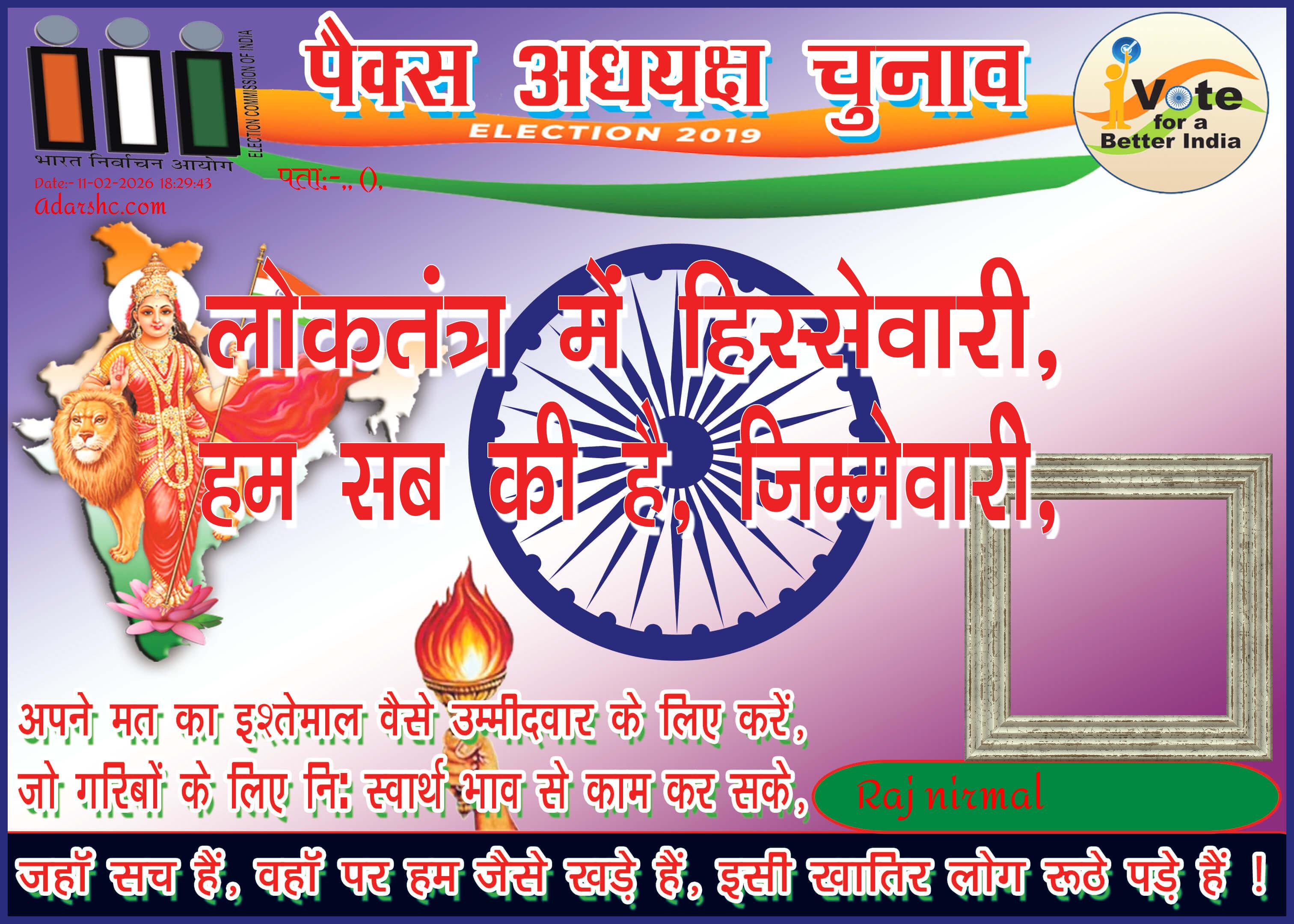 पैक्स चुनाव - 2019 को लेकर यह संदेश लोगों के हित में और सही प्रतिनिधि चुनने हेतु उद्देश्य से जारी किया गया है ! 🙏