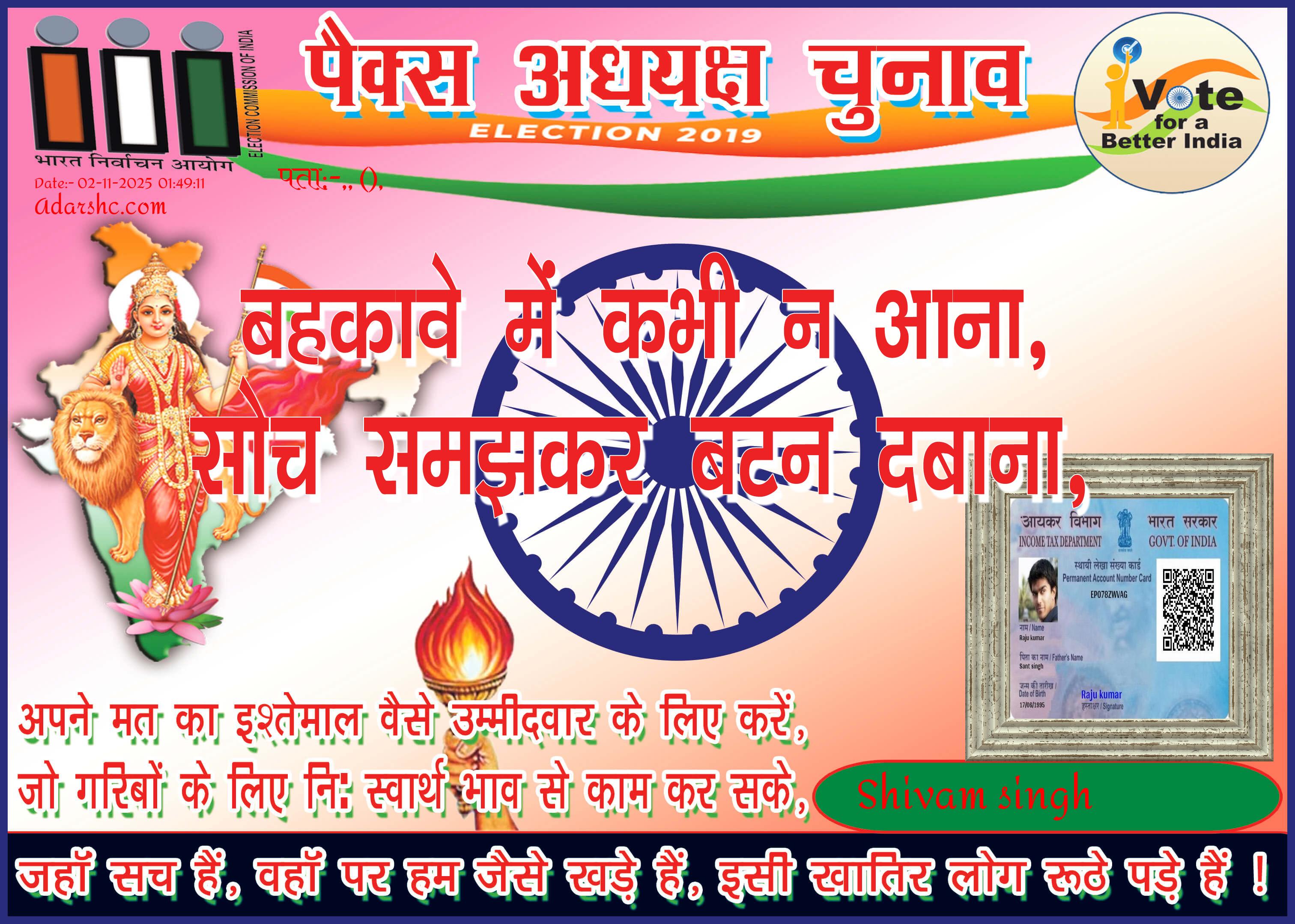 पैक्स चुनाव - 2019 को लेकर यह संदेश लोगों के हित में और सही प्रतिनिधि चुनने हेतु उद्देश्य से जारी किया गया है ! 🙏