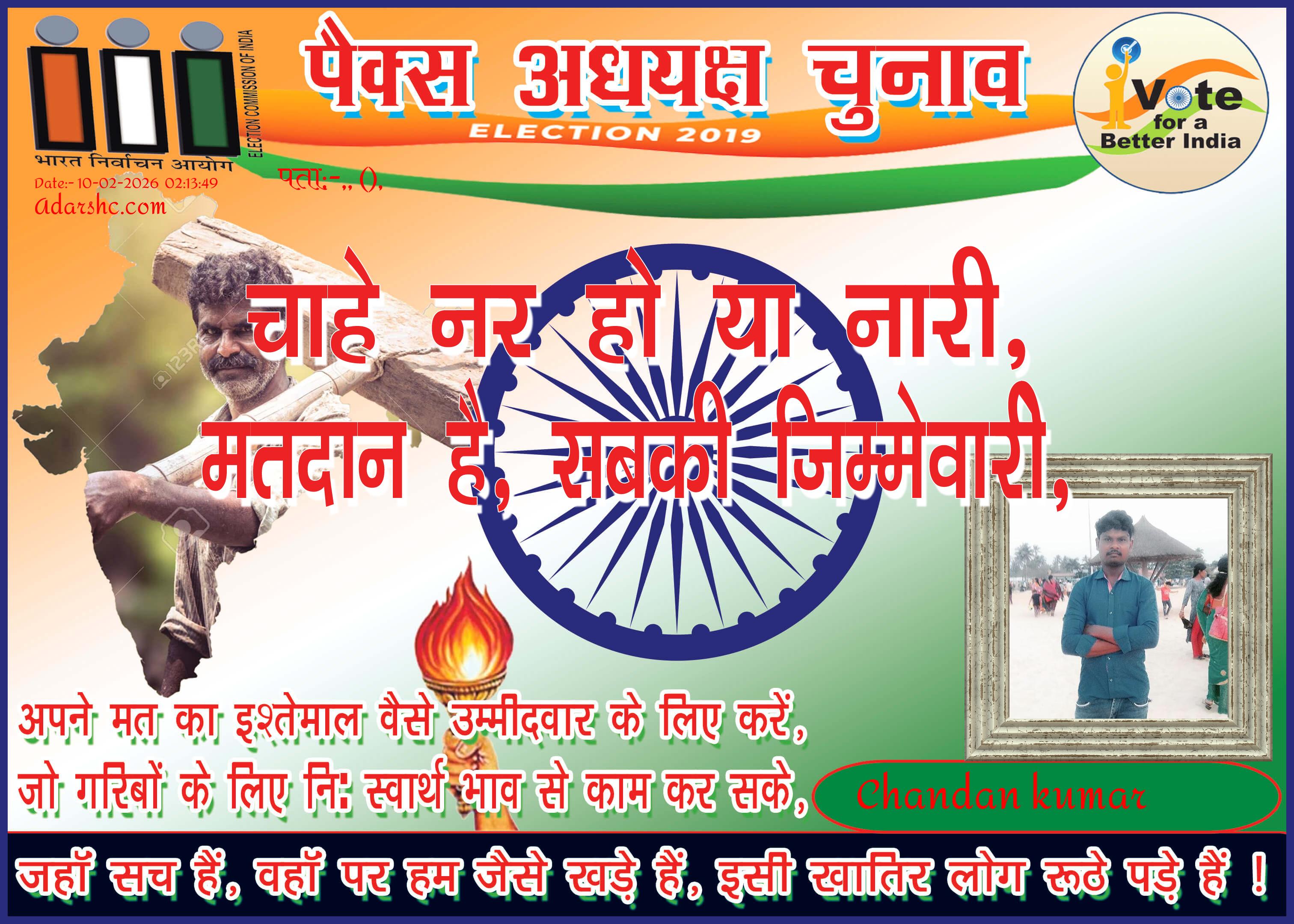 पैक्स चुनाव - 2019 को लेकर यह संदेश लोगों के हित में और सही प्रतिनिधि चुनने हेतु उद्देश्य से जारी किया गया है ! 🙏