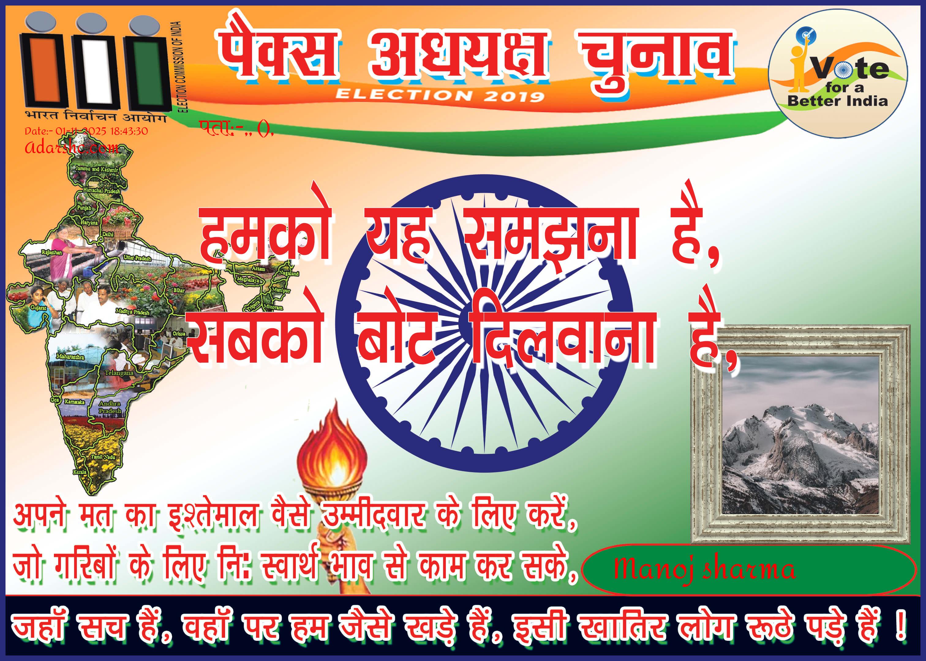 पैक्स चुनाव - 2019 को लेकर यह संदेश लोगों के हित में और सही प्रतिनिधि चुनने हेतु उद्देश्य से जारी किया गया है ! 🙏