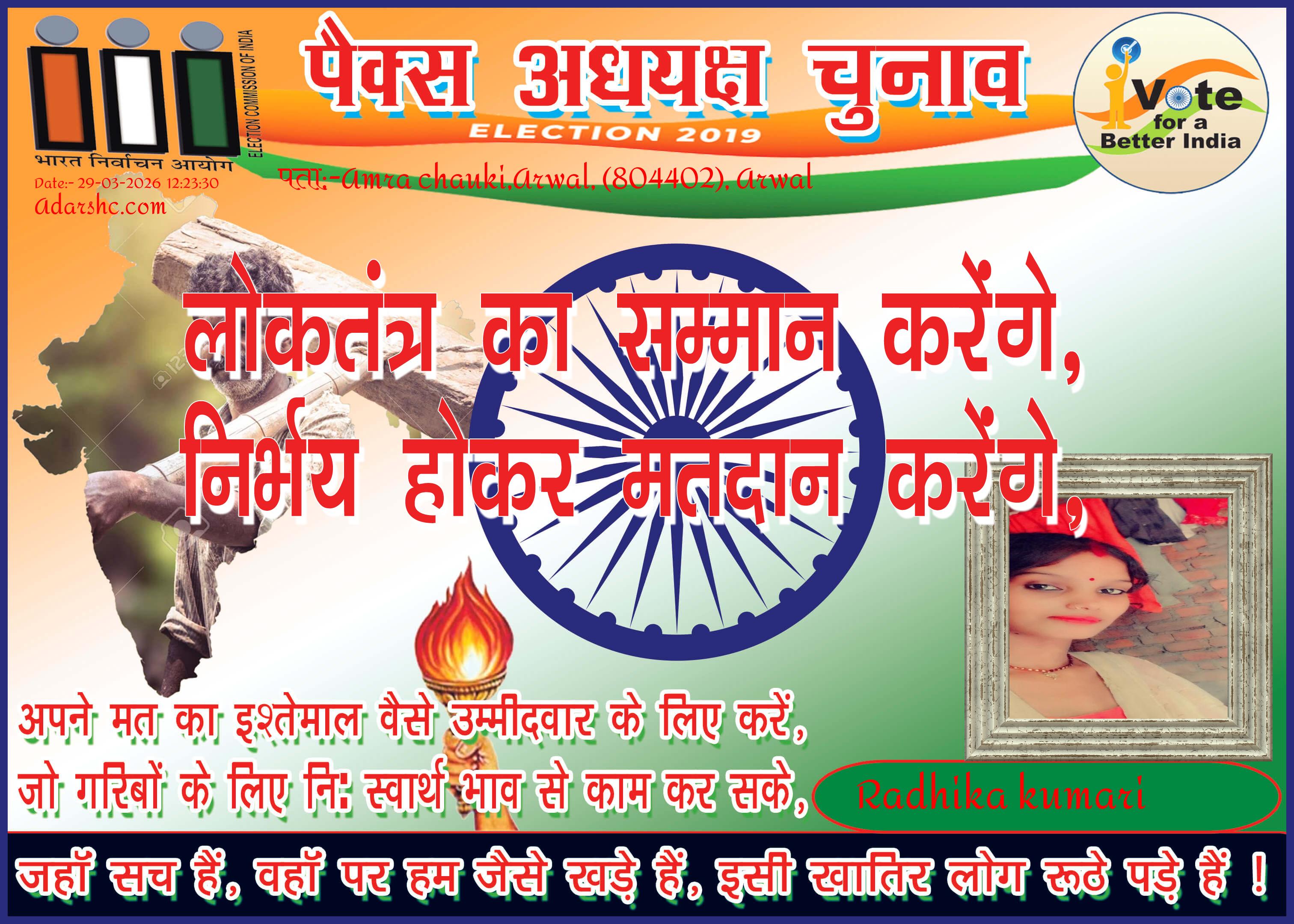 पैक्स चुनाव - 2019 को लेकर यह संदेश लोगों के हित में और सही प्रतिनिधि चुनने हेतु उद्देश्य से जारी किया गया है ! 🙏