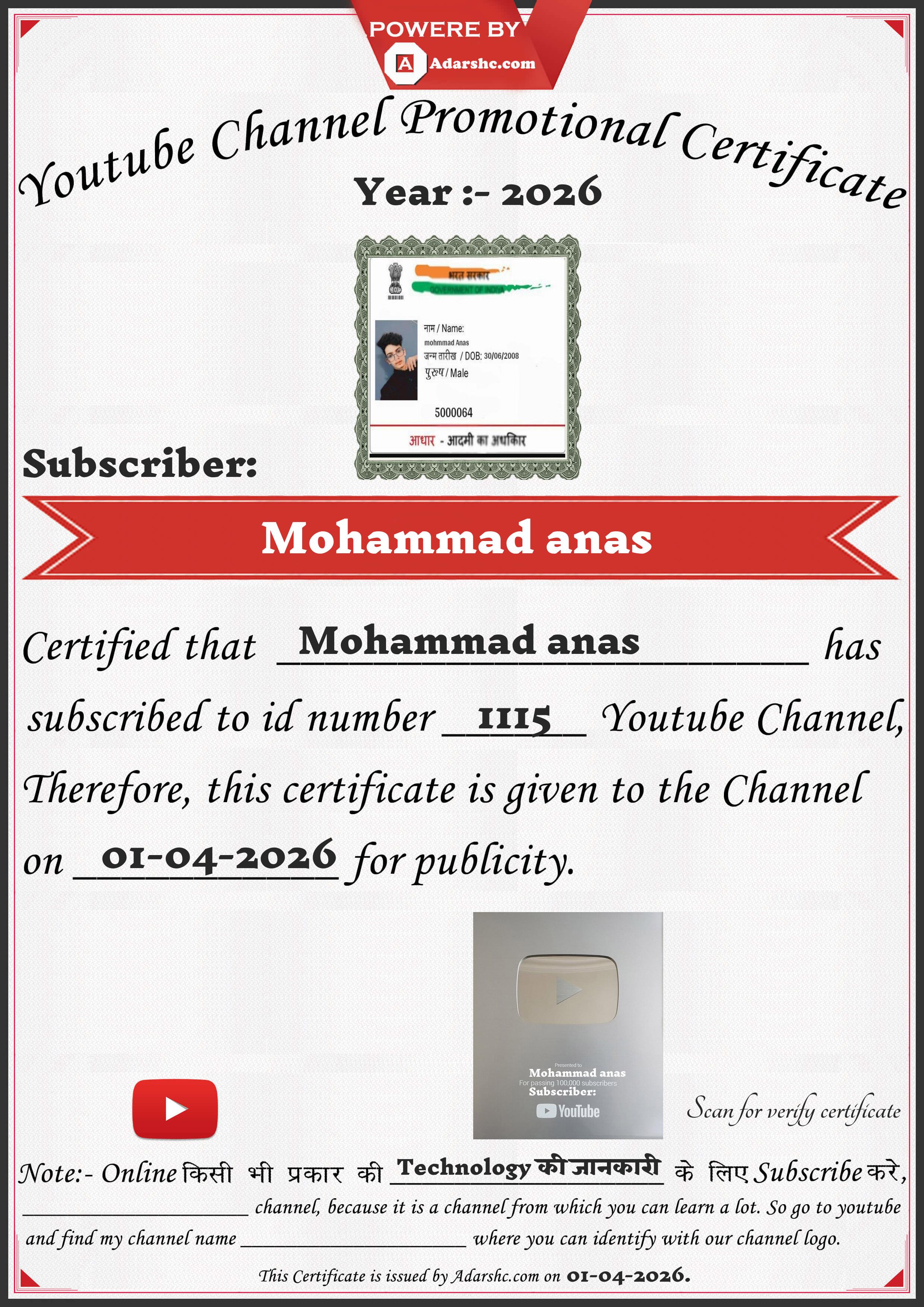 Youtube Promotion Certificate