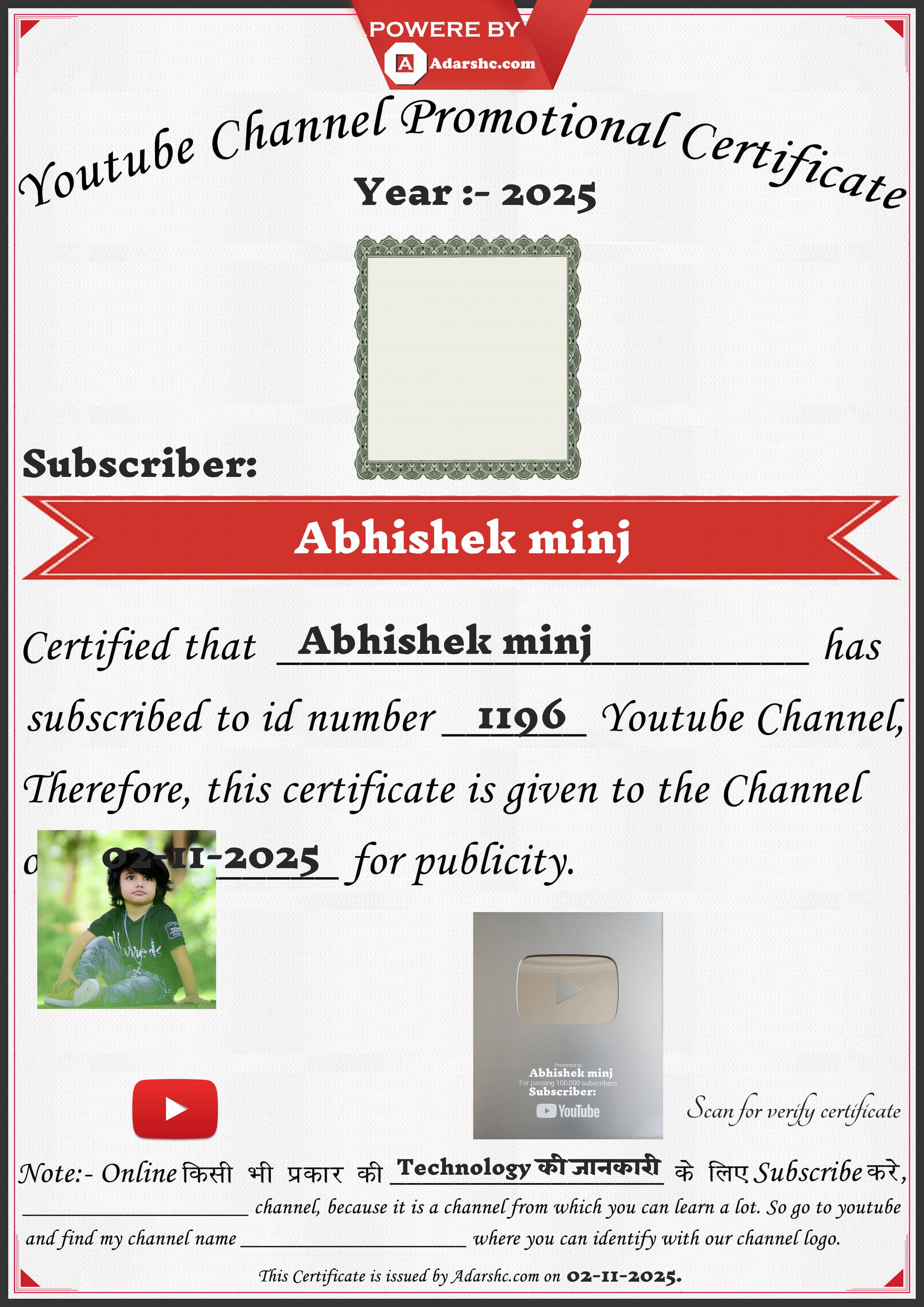 Youtube Promotion Certificate