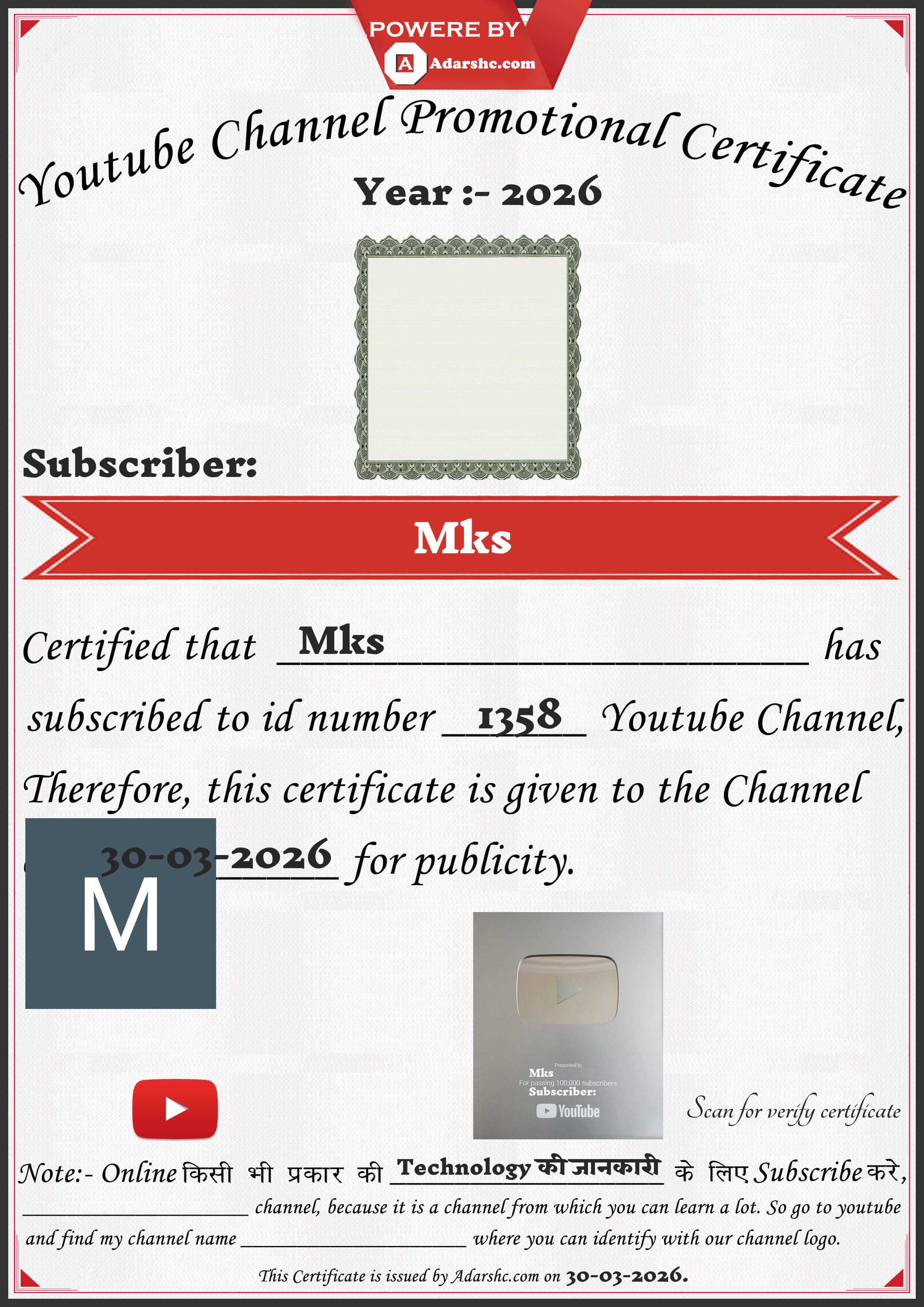 Youtube Promotion Certificate