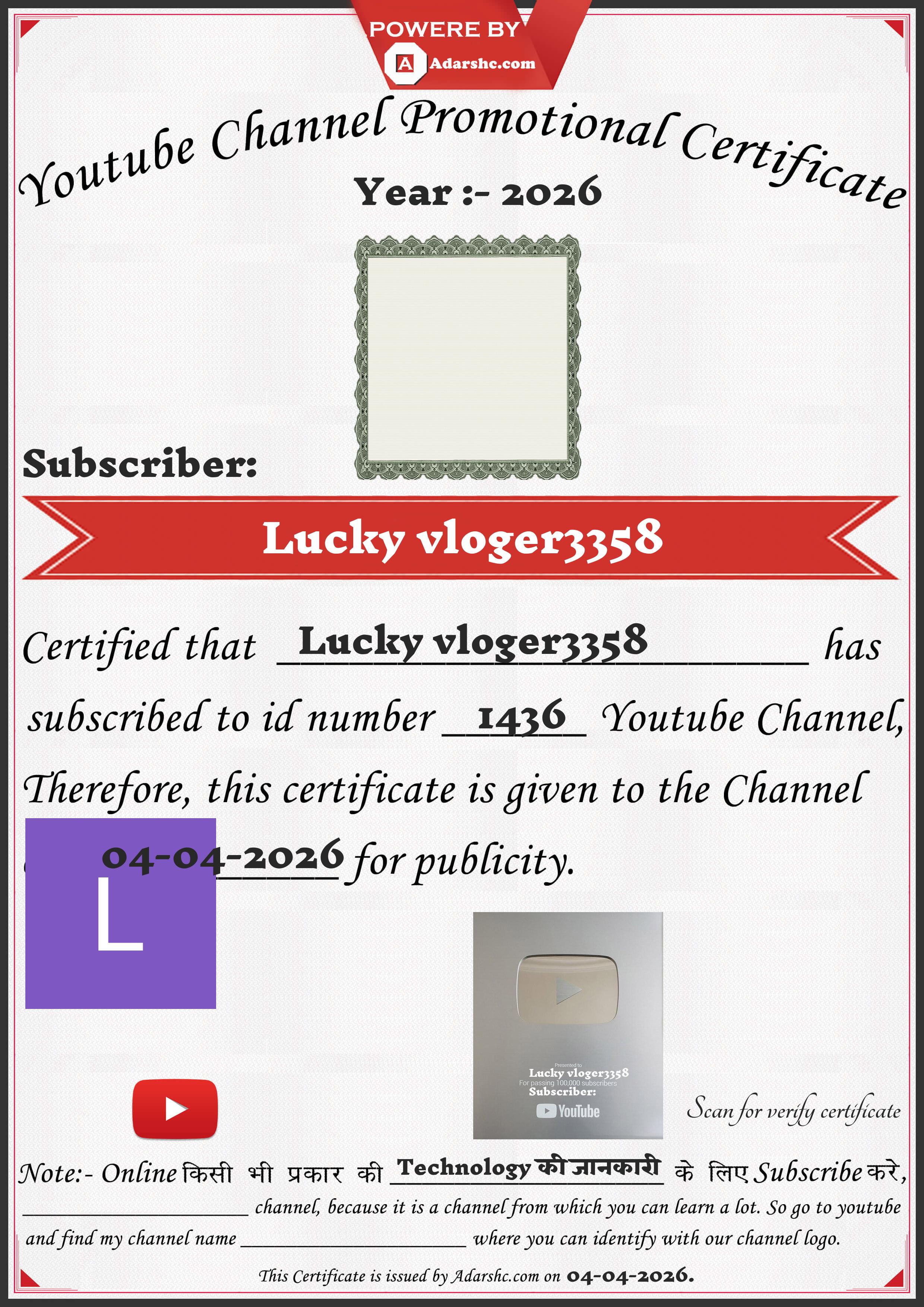 Youtube Promotion Certificate