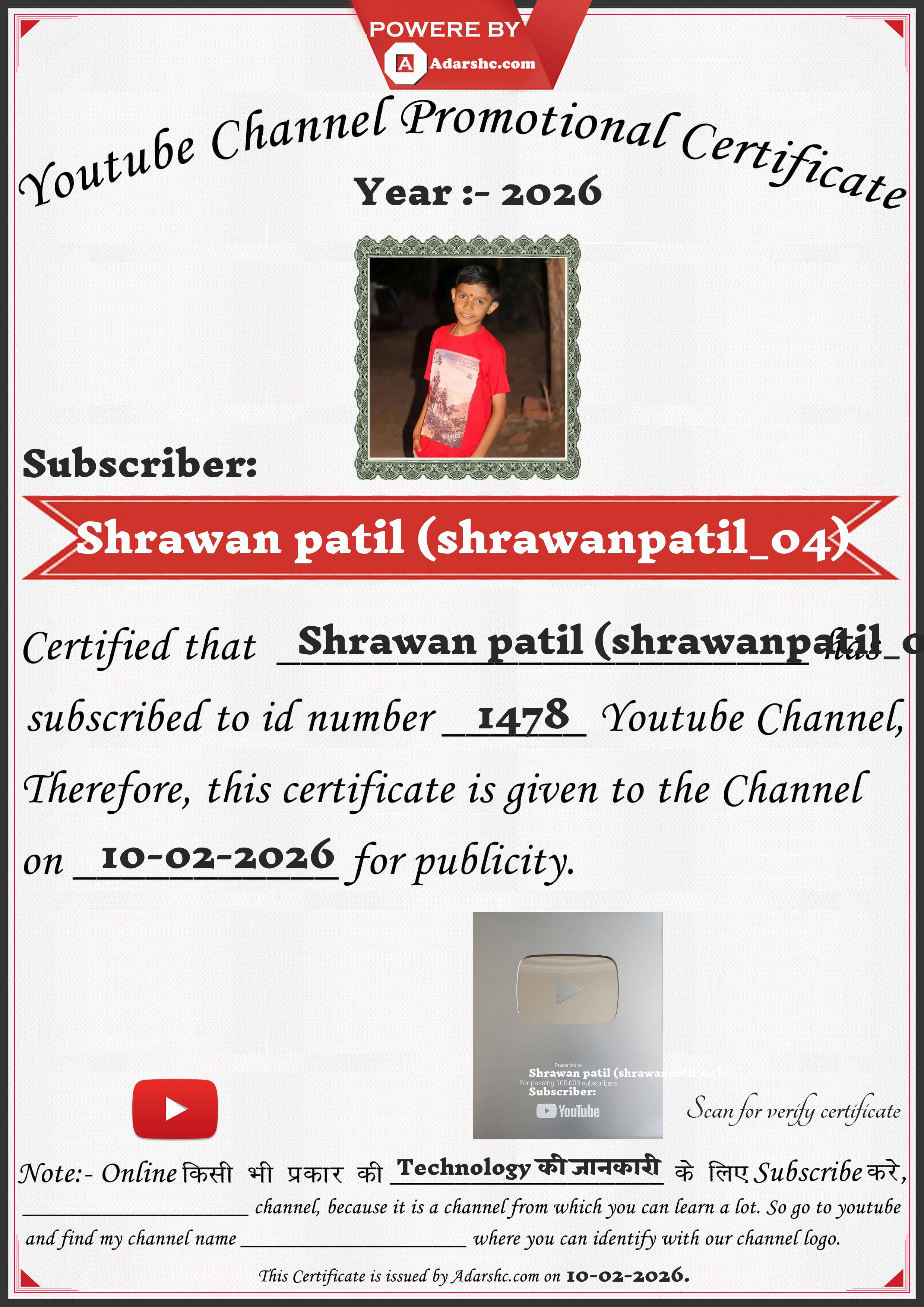 Youtube Promotion Certificate