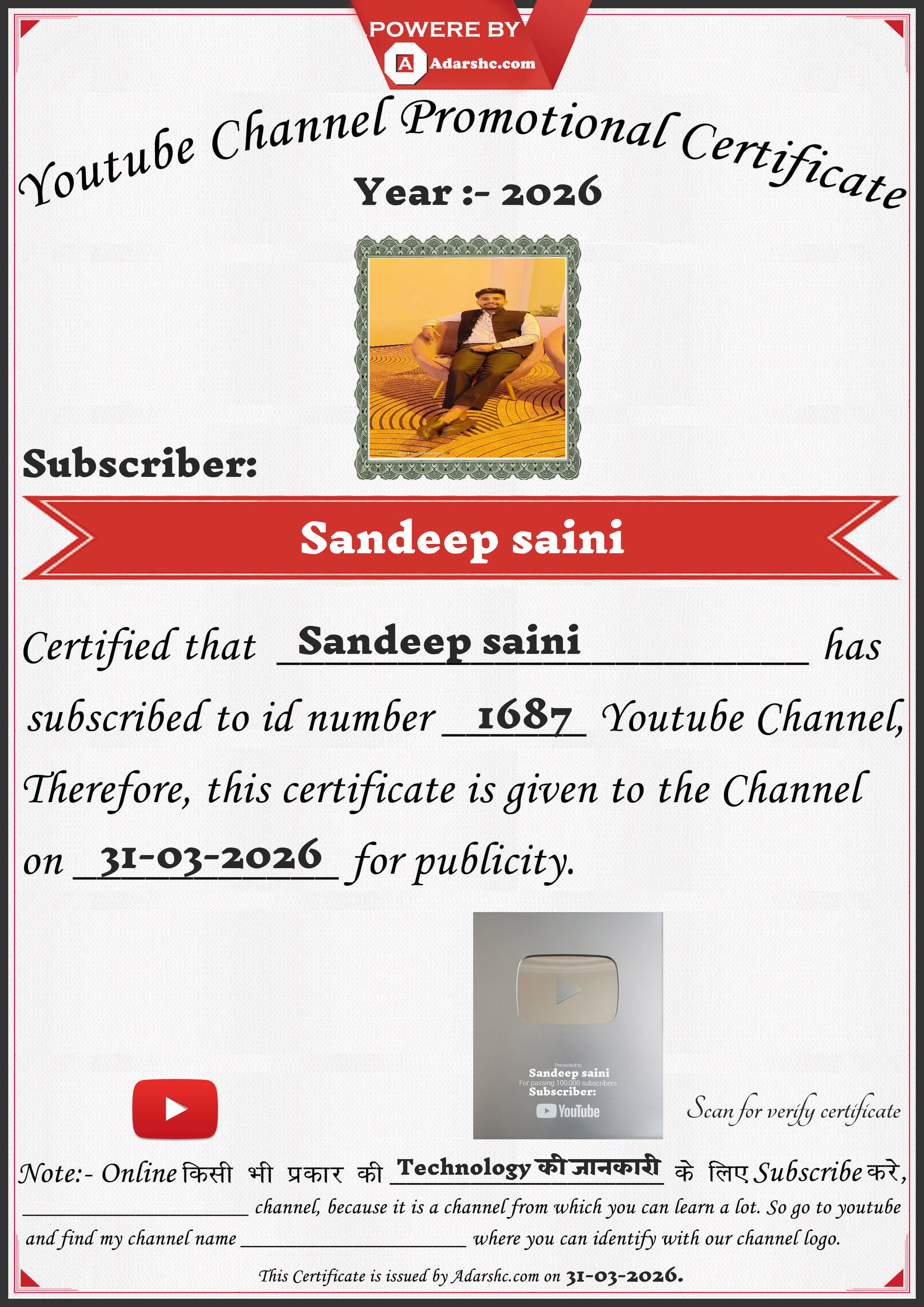 Youtube Promotion Certificate