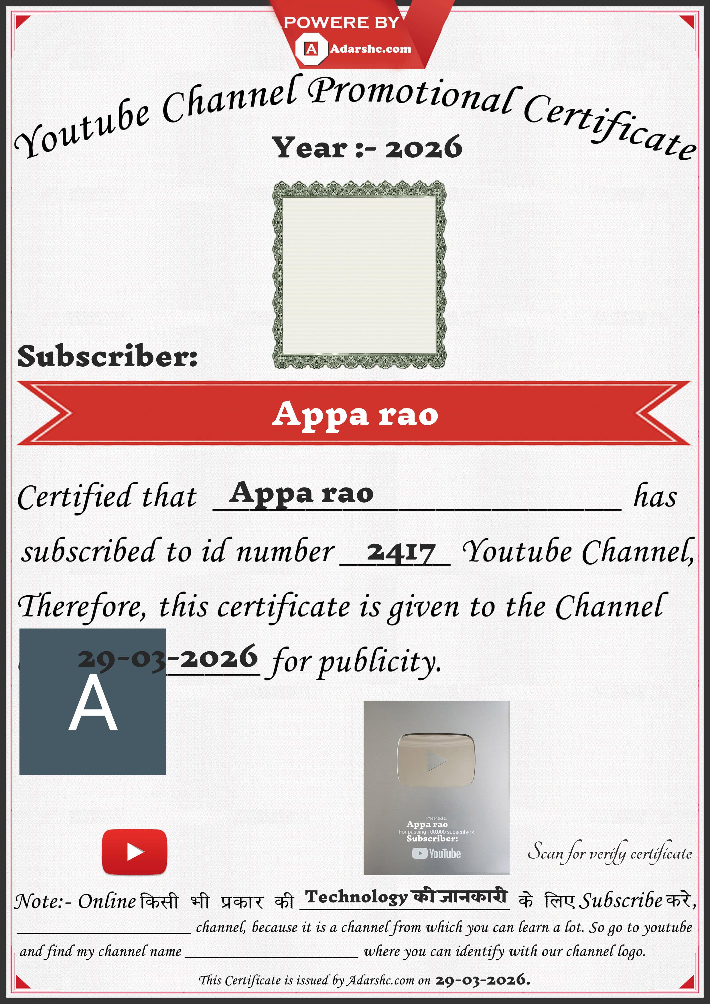 Youtube Promotion Certificate