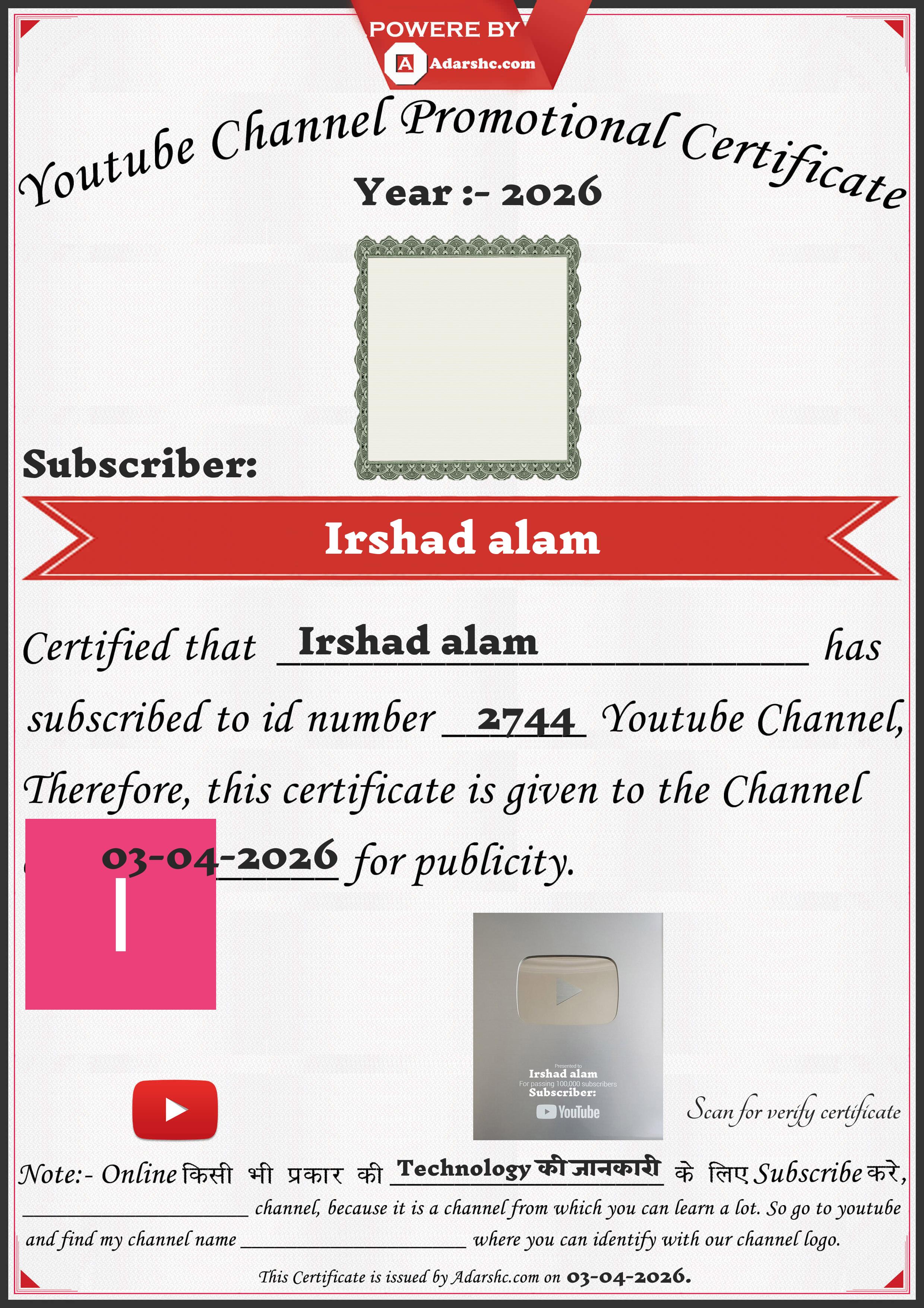 Youtube Promotion Certificate