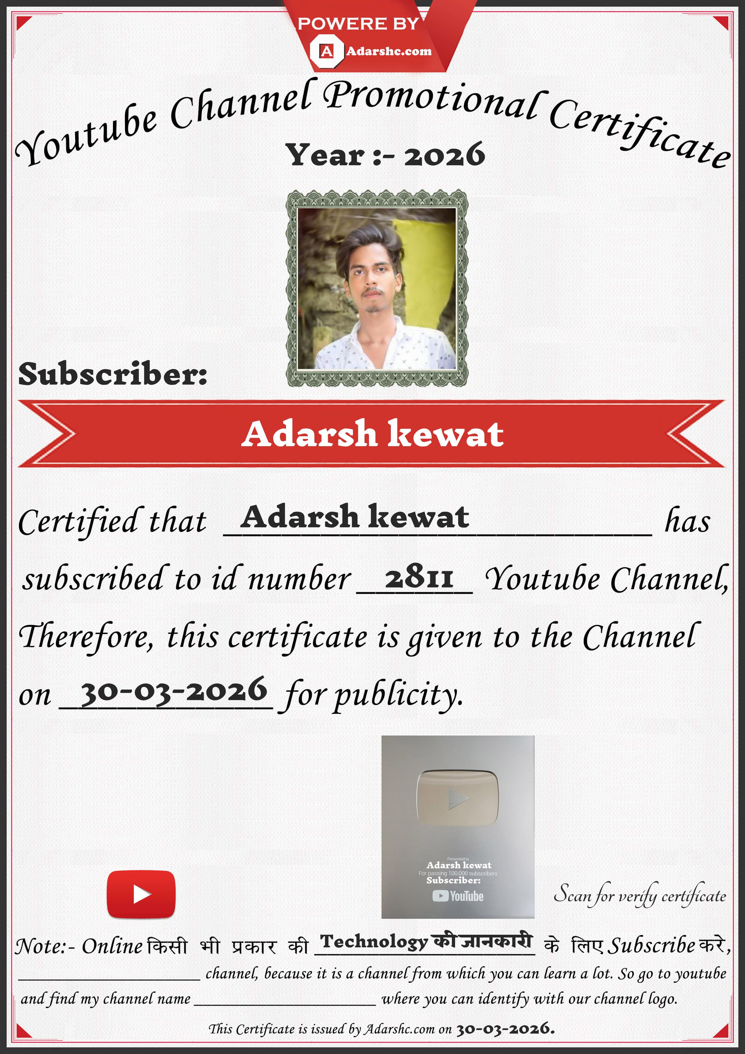 Youtube Promotion Certificate
