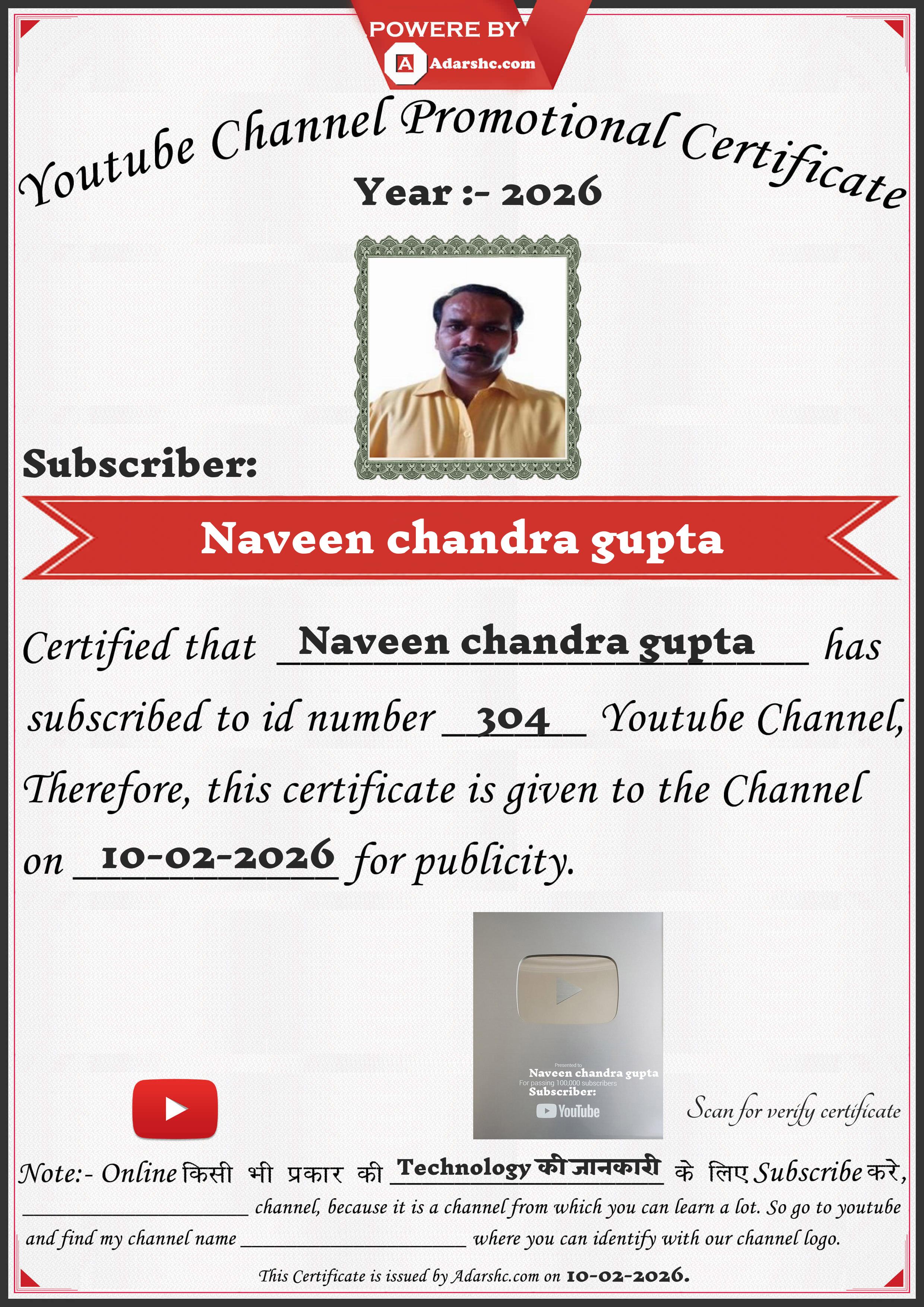 Youtube Promotion Certificate