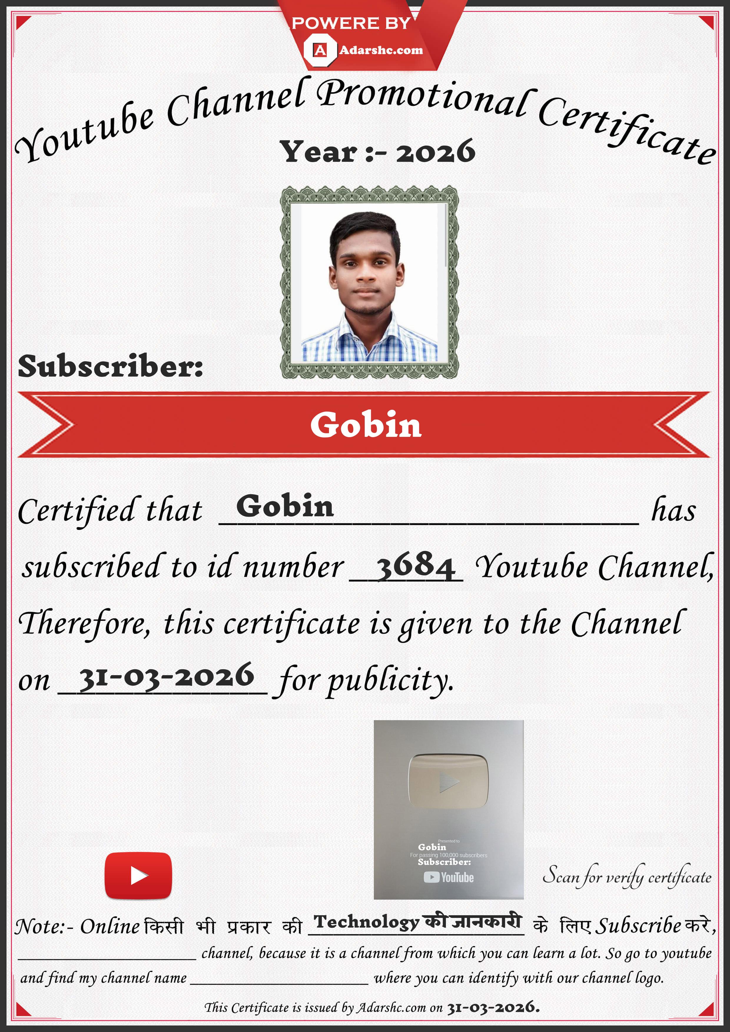 Youtube Promotion Certificate