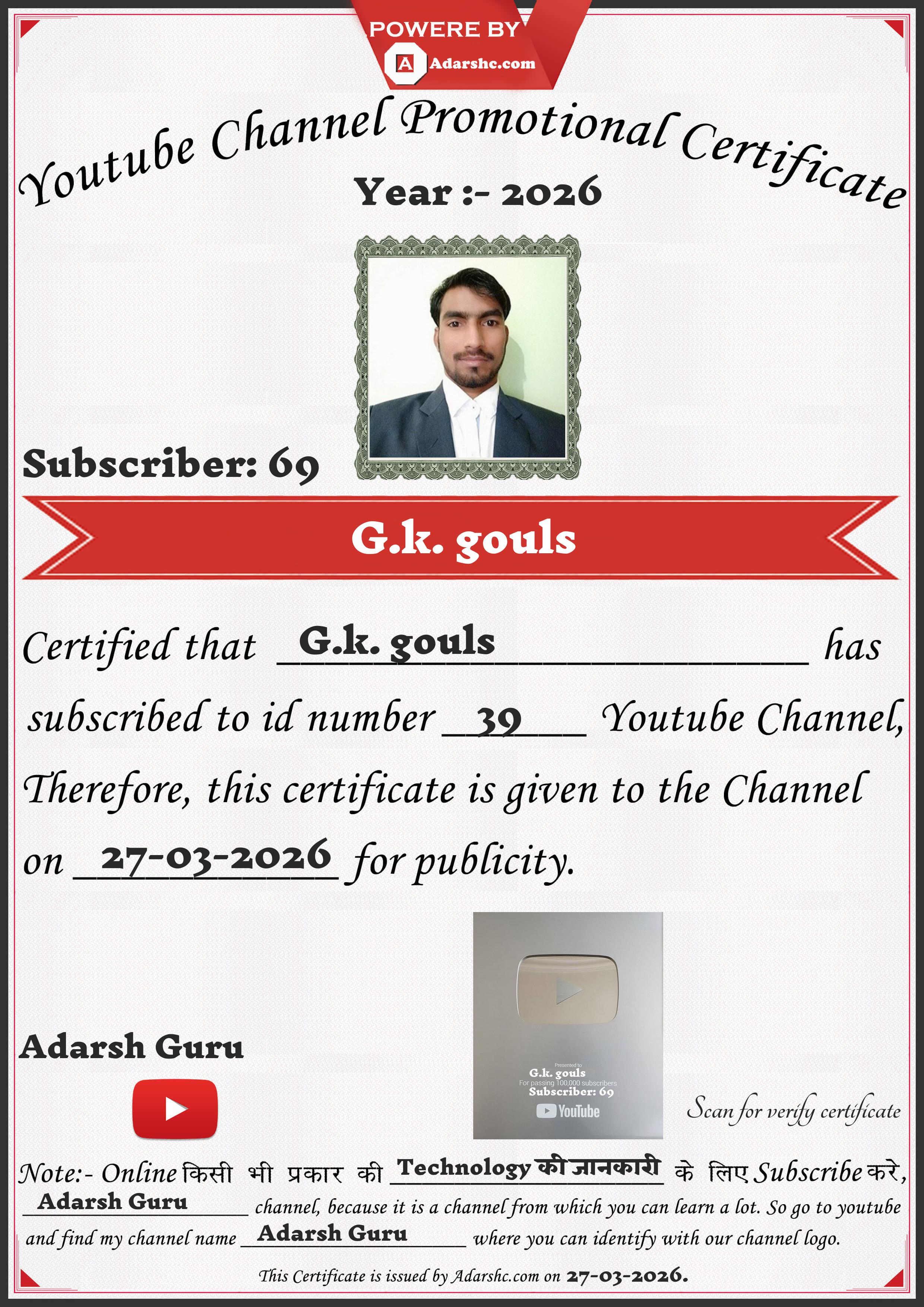Youtube Promotion Certificate