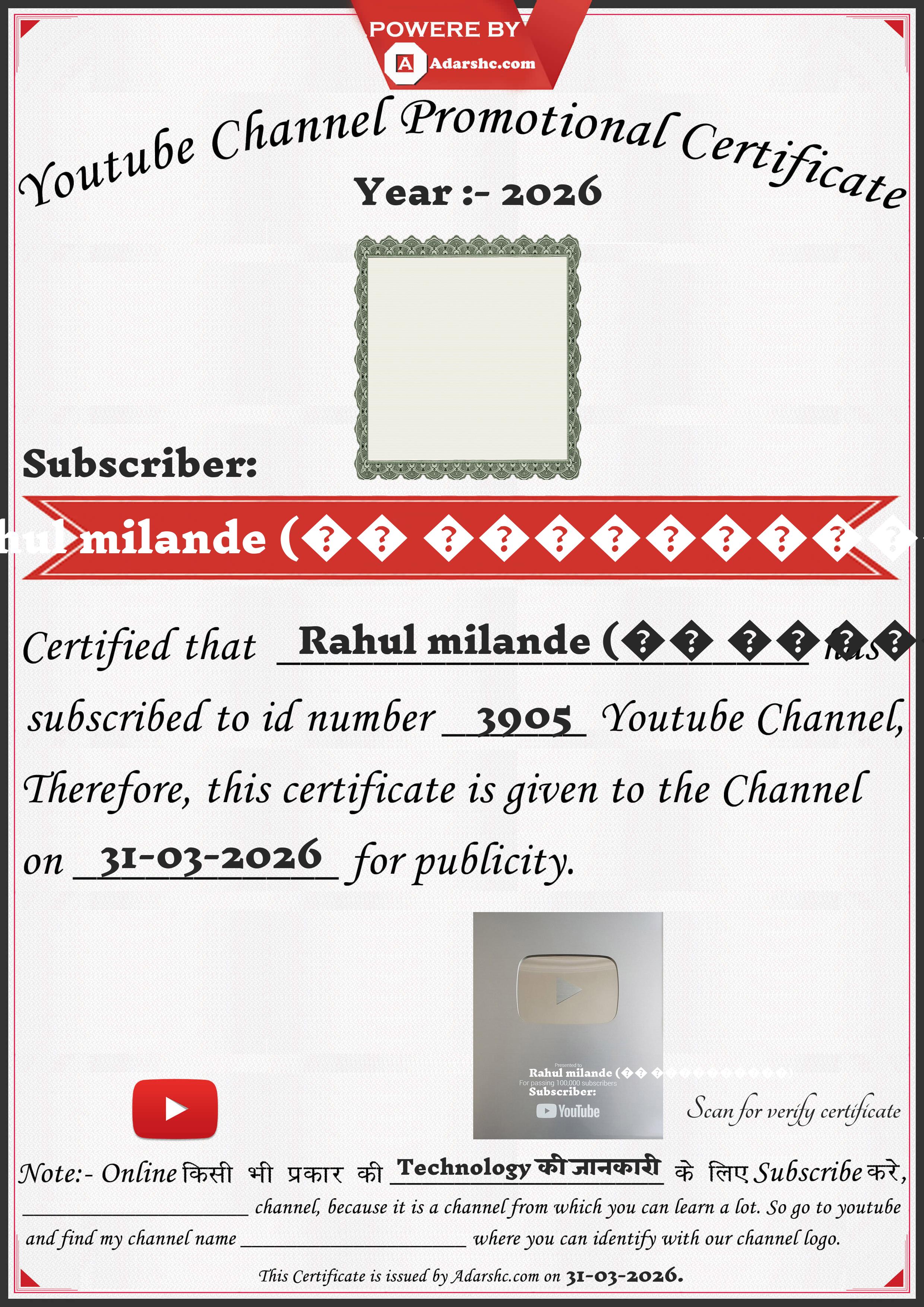 Youtube Promotion Certificate