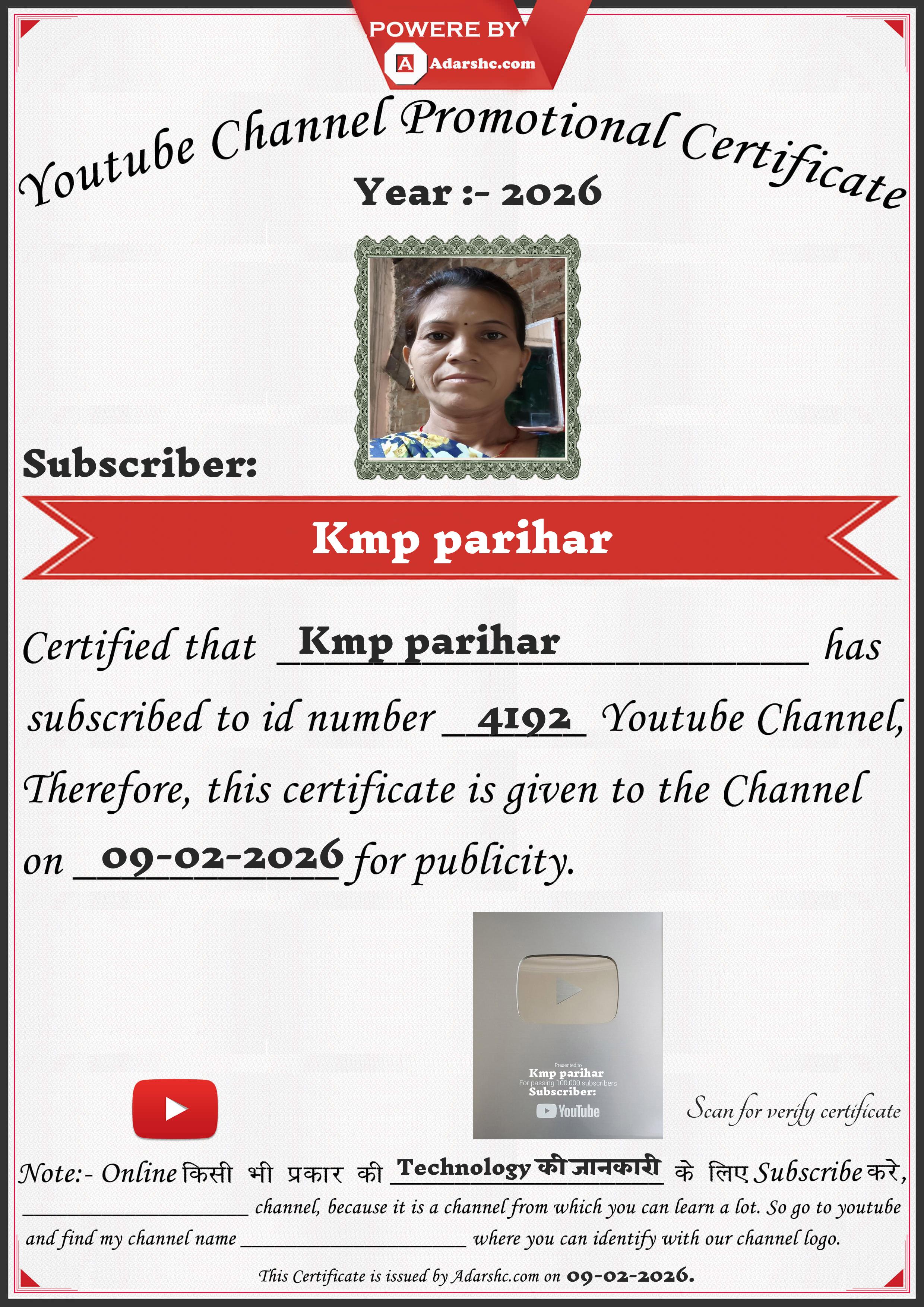 Youtube Promotion Certificate
