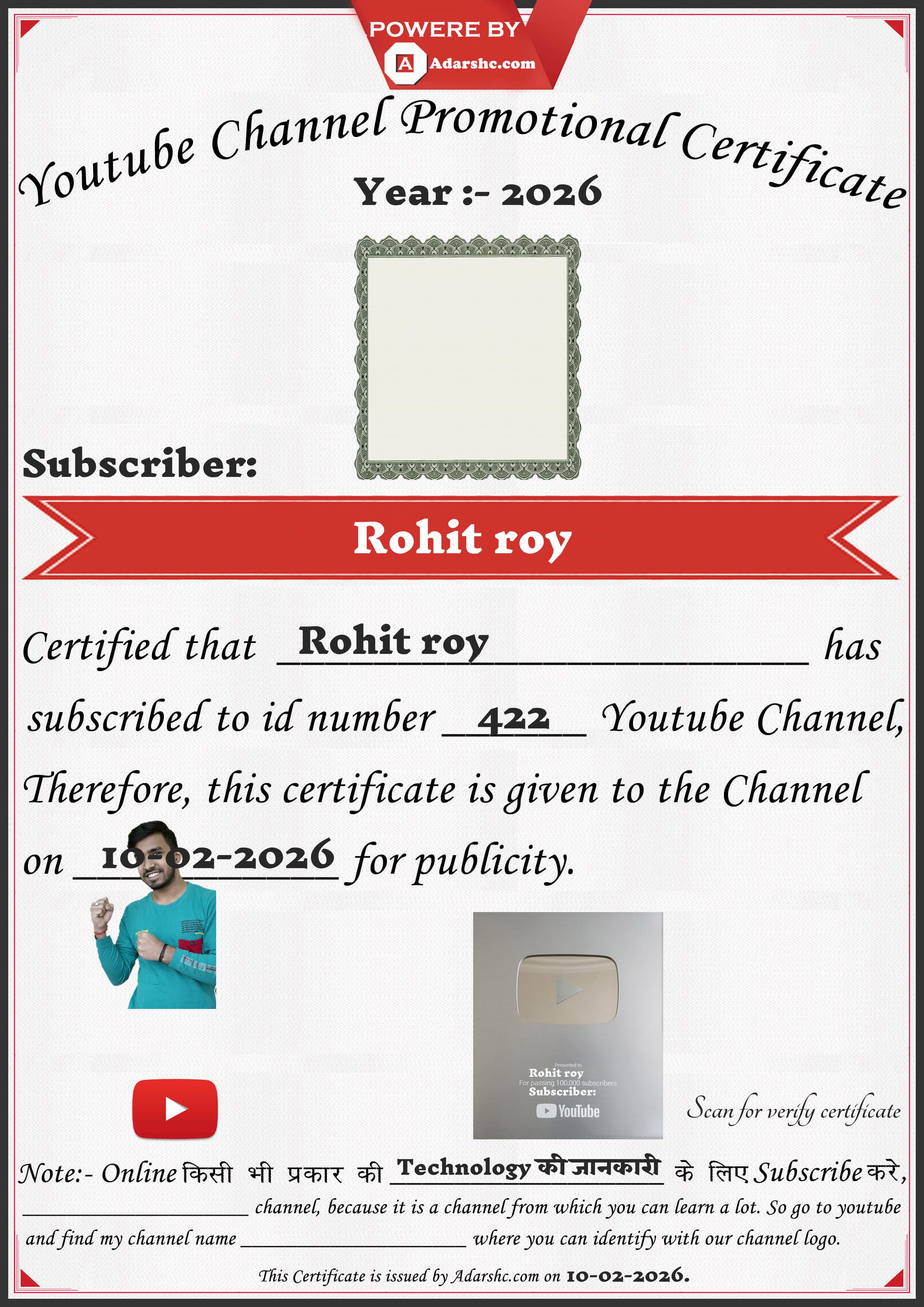 Youtube Promotion Certificate