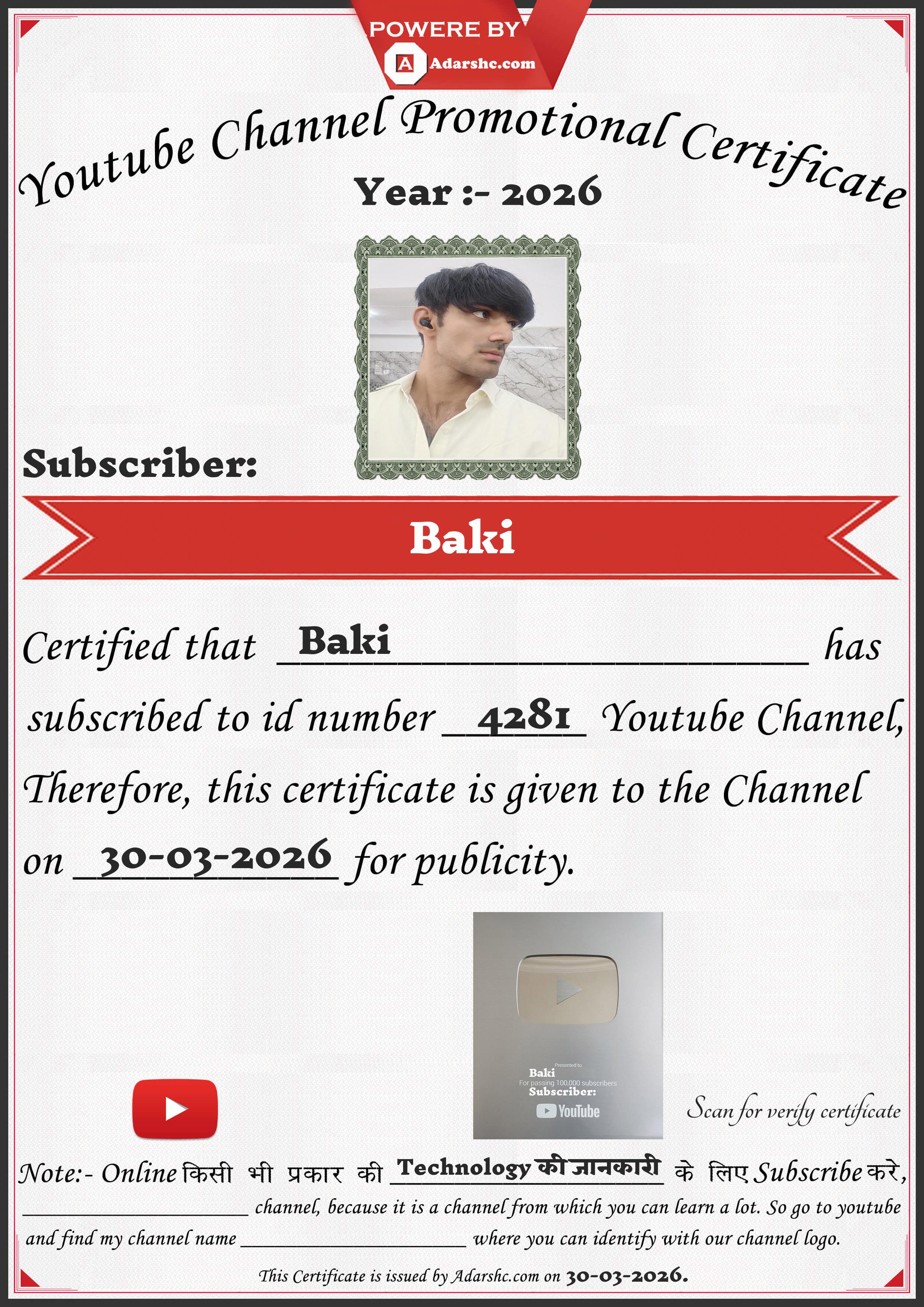 Youtube Promotion Certificate