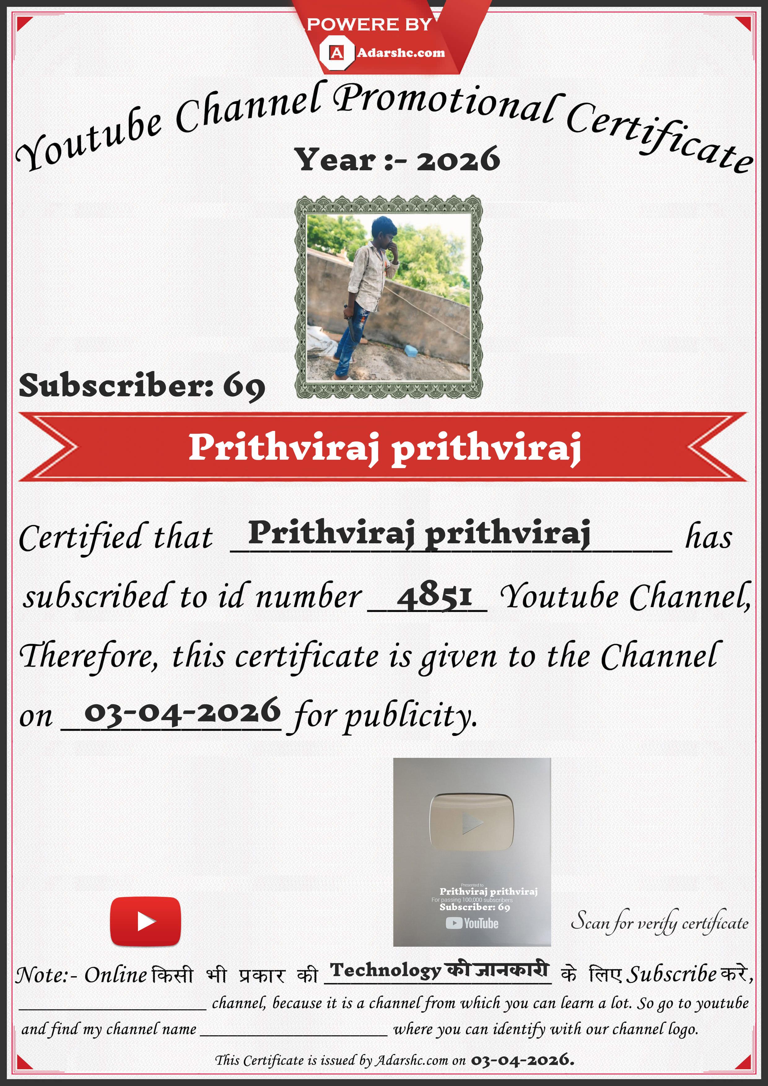 Youtube Promotion Certificate