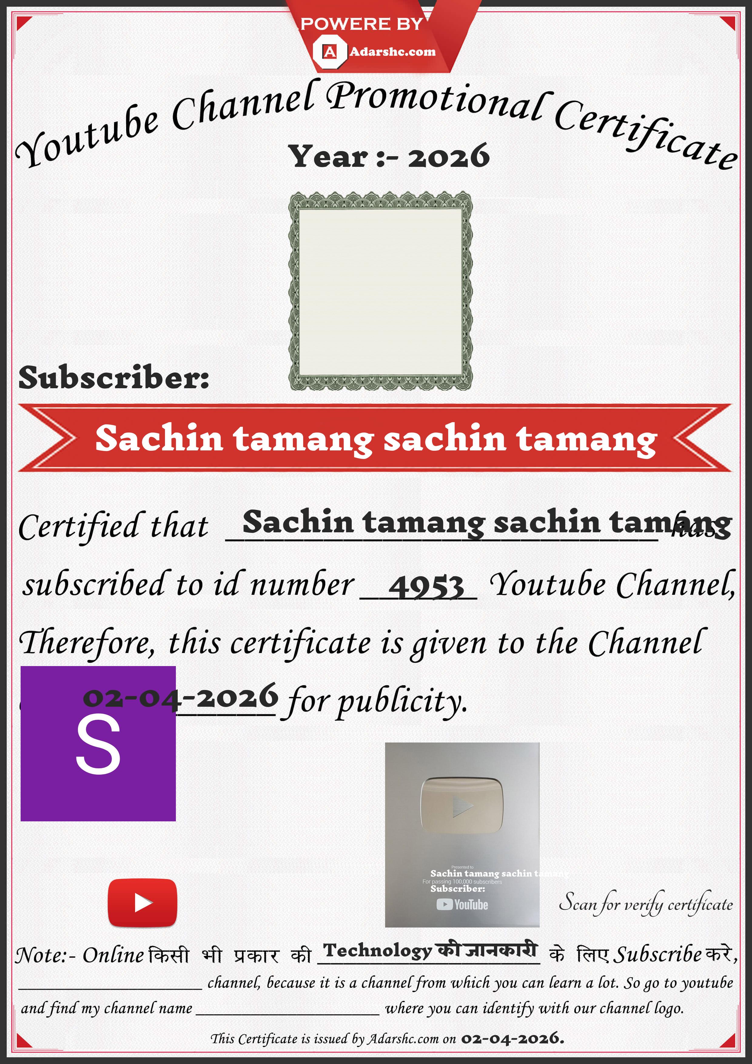 Youtube Promotion Certificate