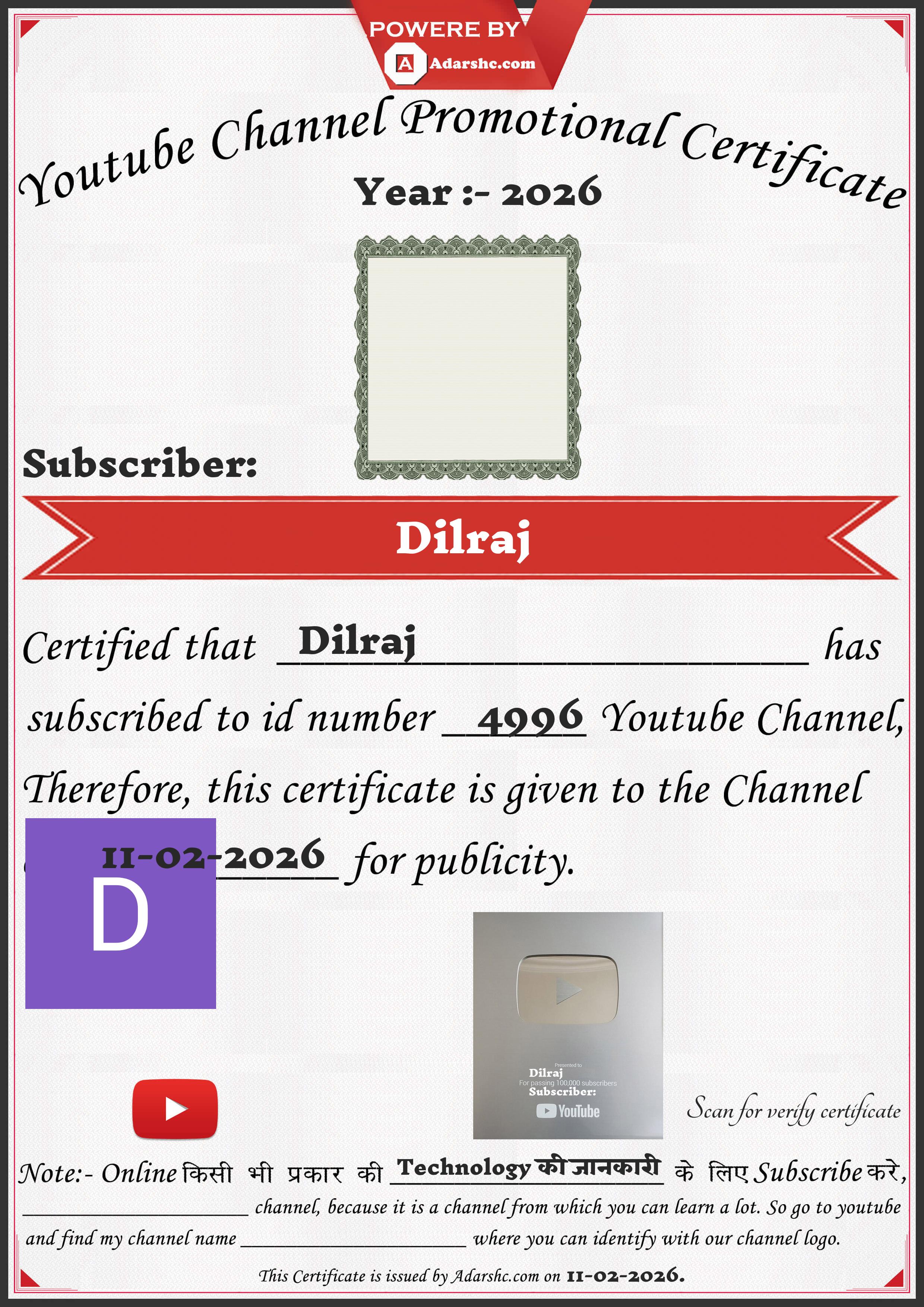 Youtube Promotion Certificate