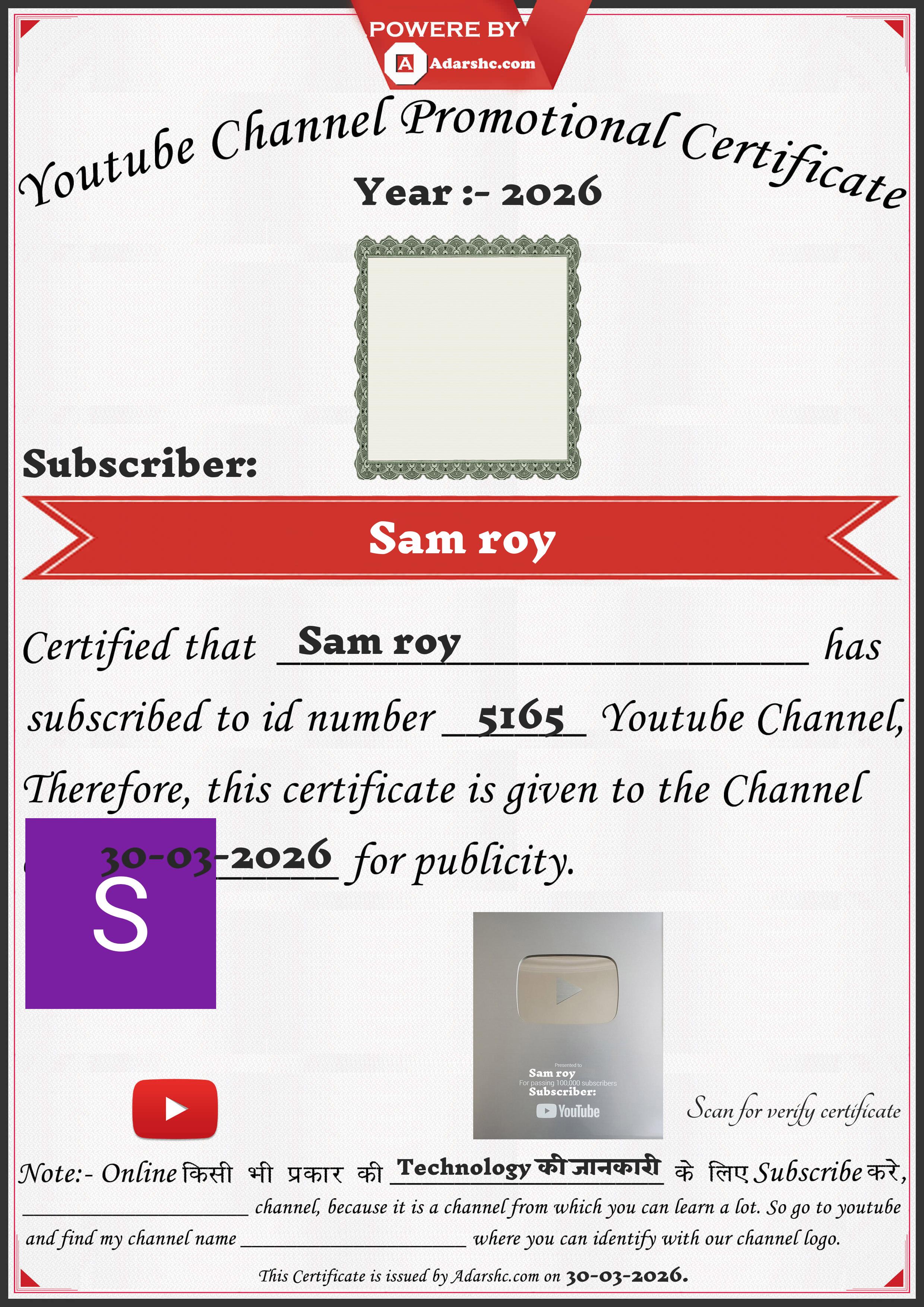Youtube Promotion Certificate