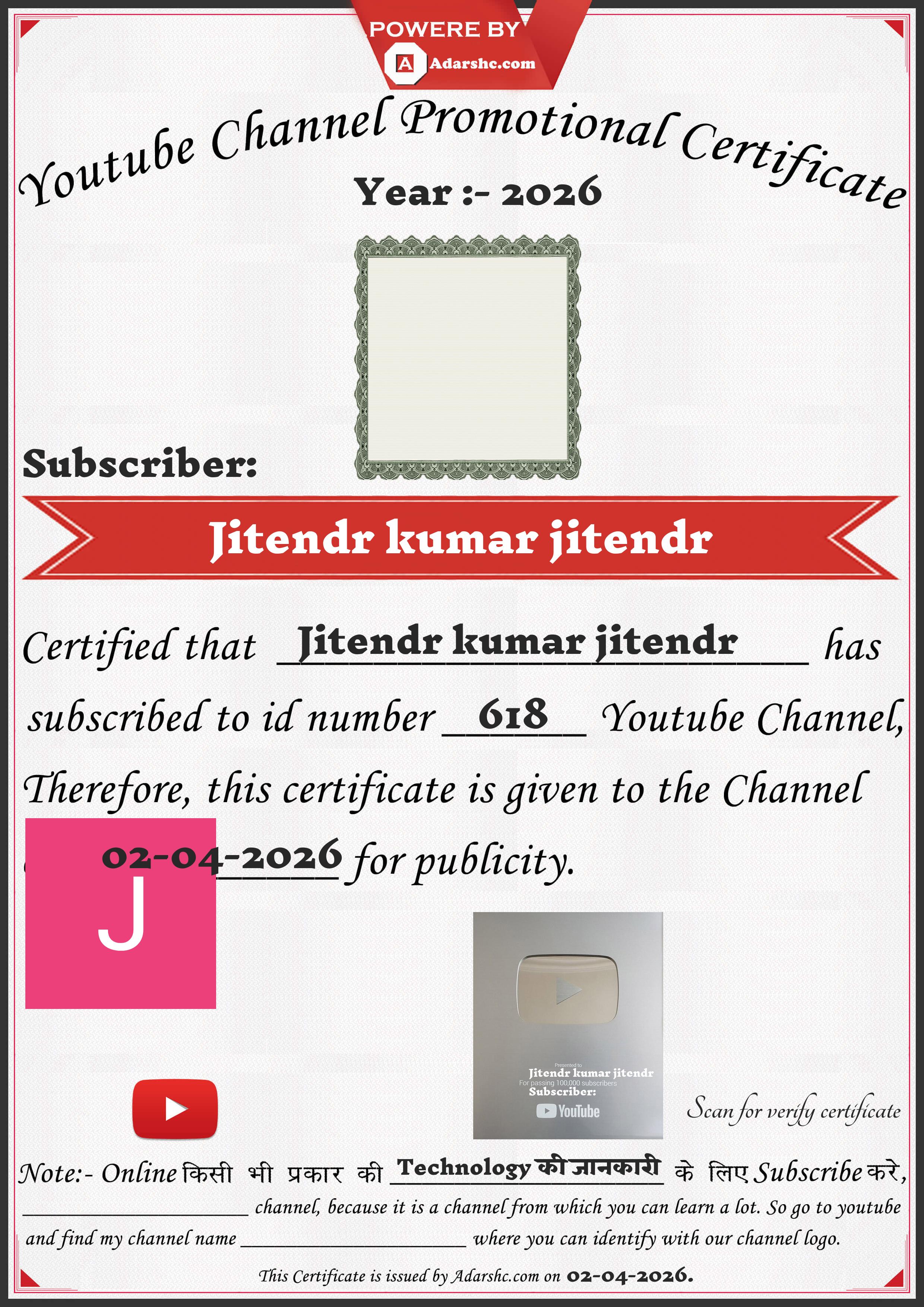 Youtube Promotion Certificate