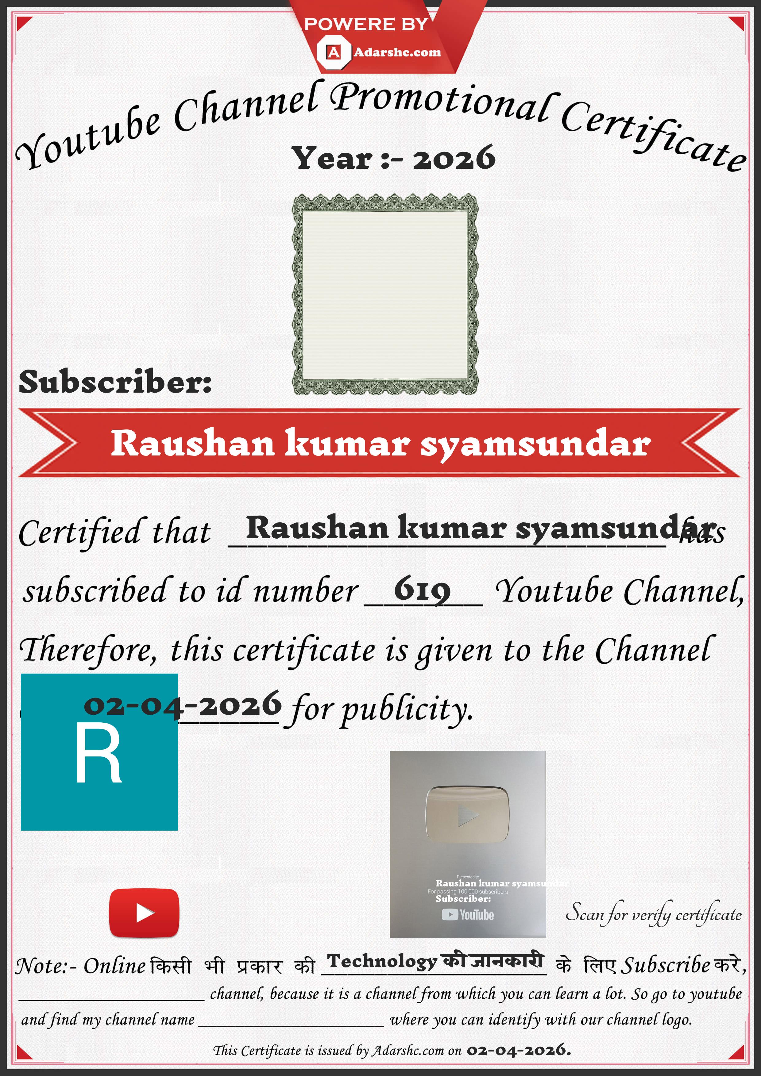 Youtube Promotion Certificate