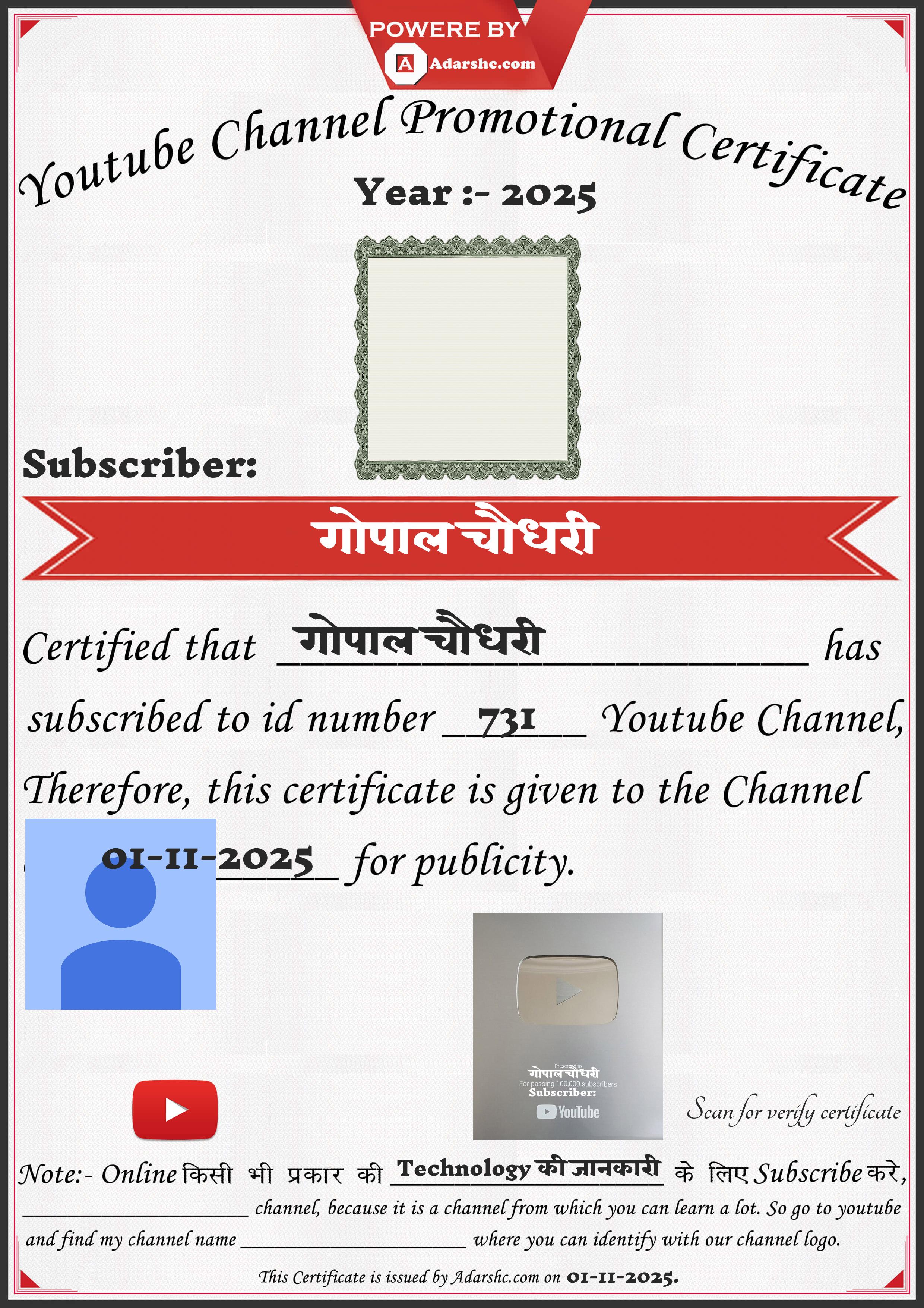 Youtube Promotion Certificate