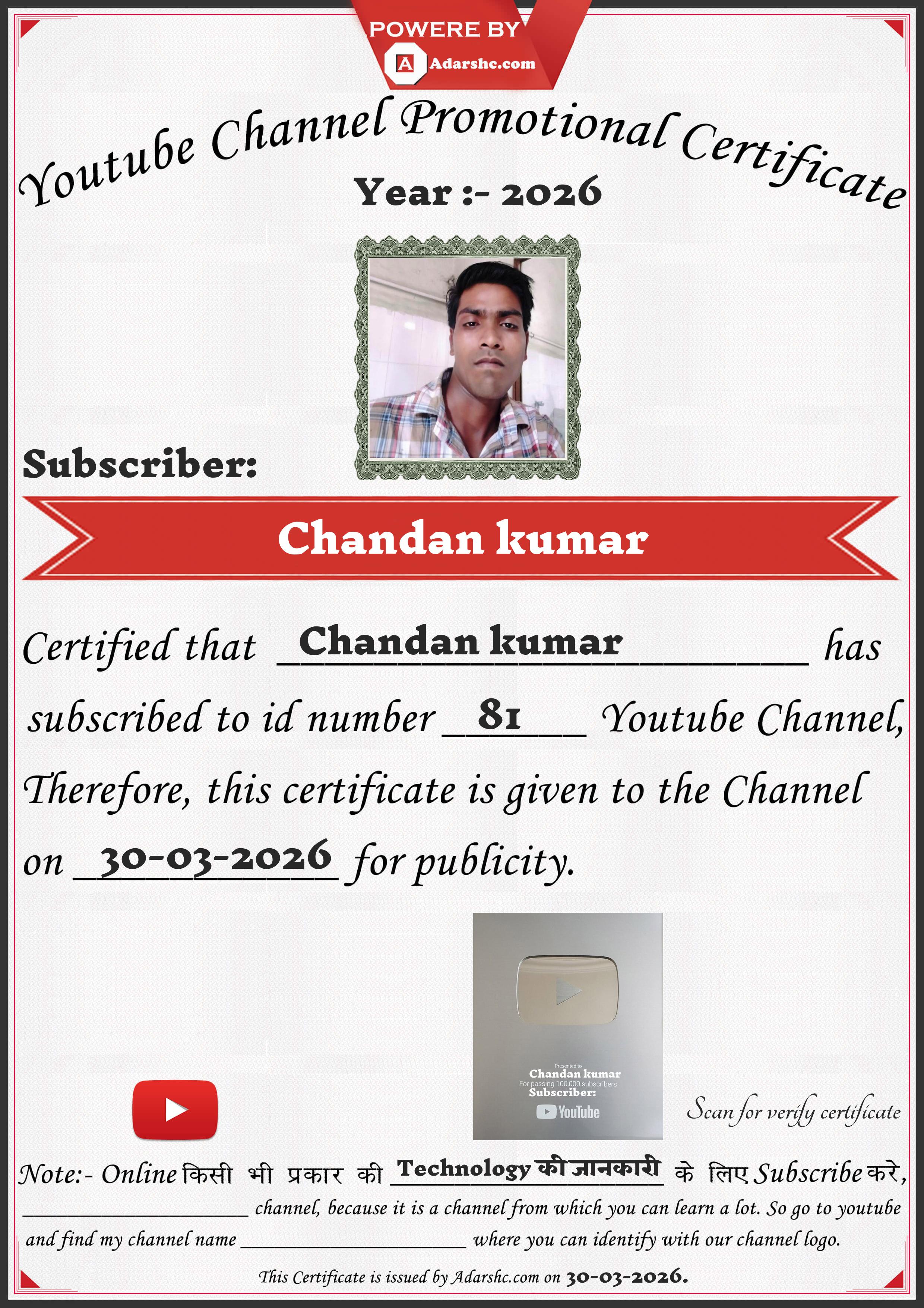 Youtube Promotion Certificate