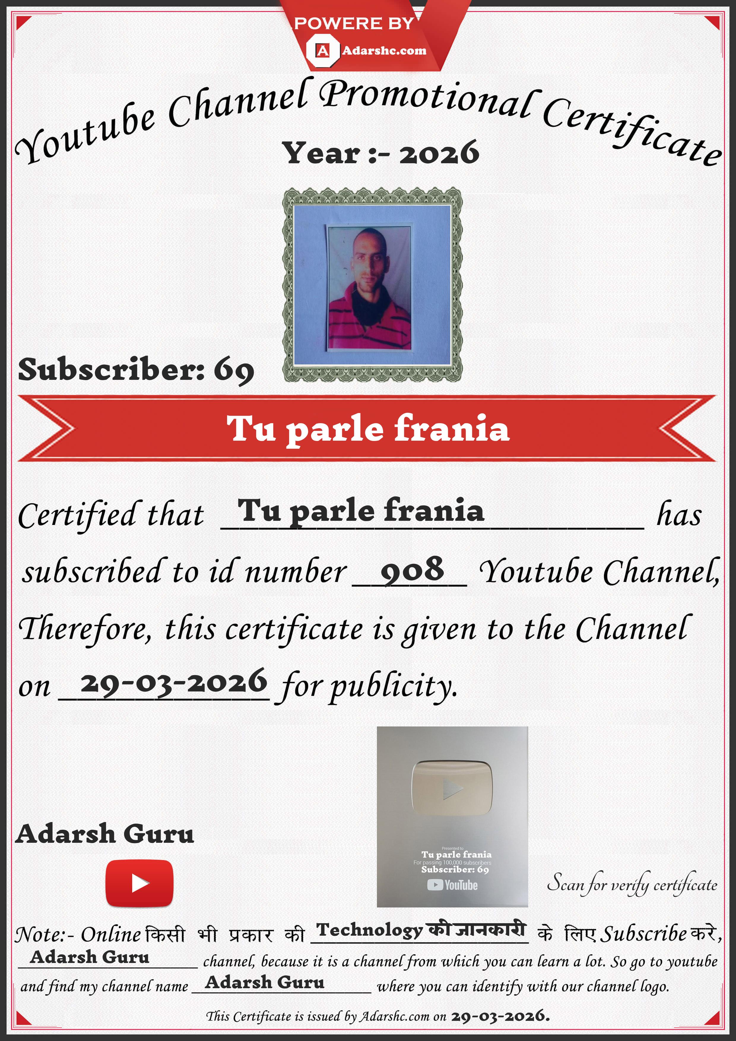 Youtube Promotion Certificate