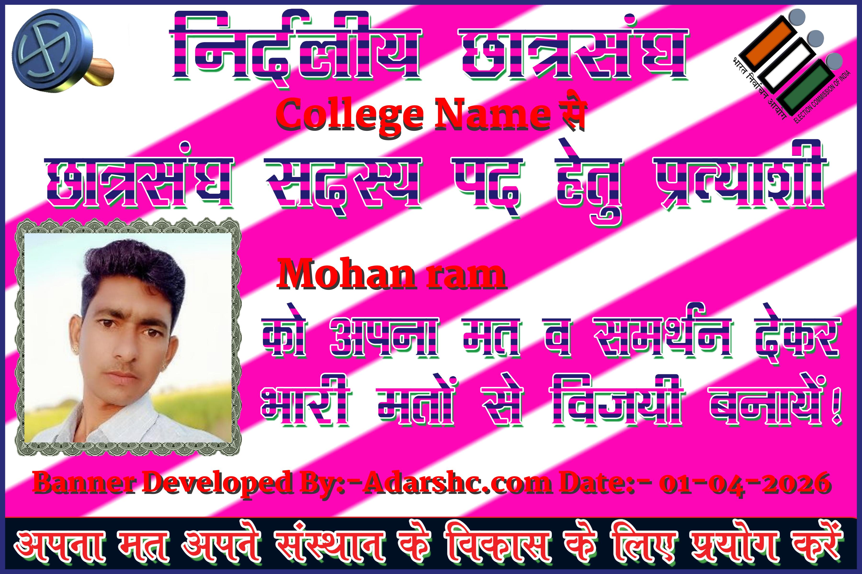 ☆ नमस्कार दोस्तों मेरा नाम Mohan ram है, मैं College Name का छात्र/छात्रा हूँ,